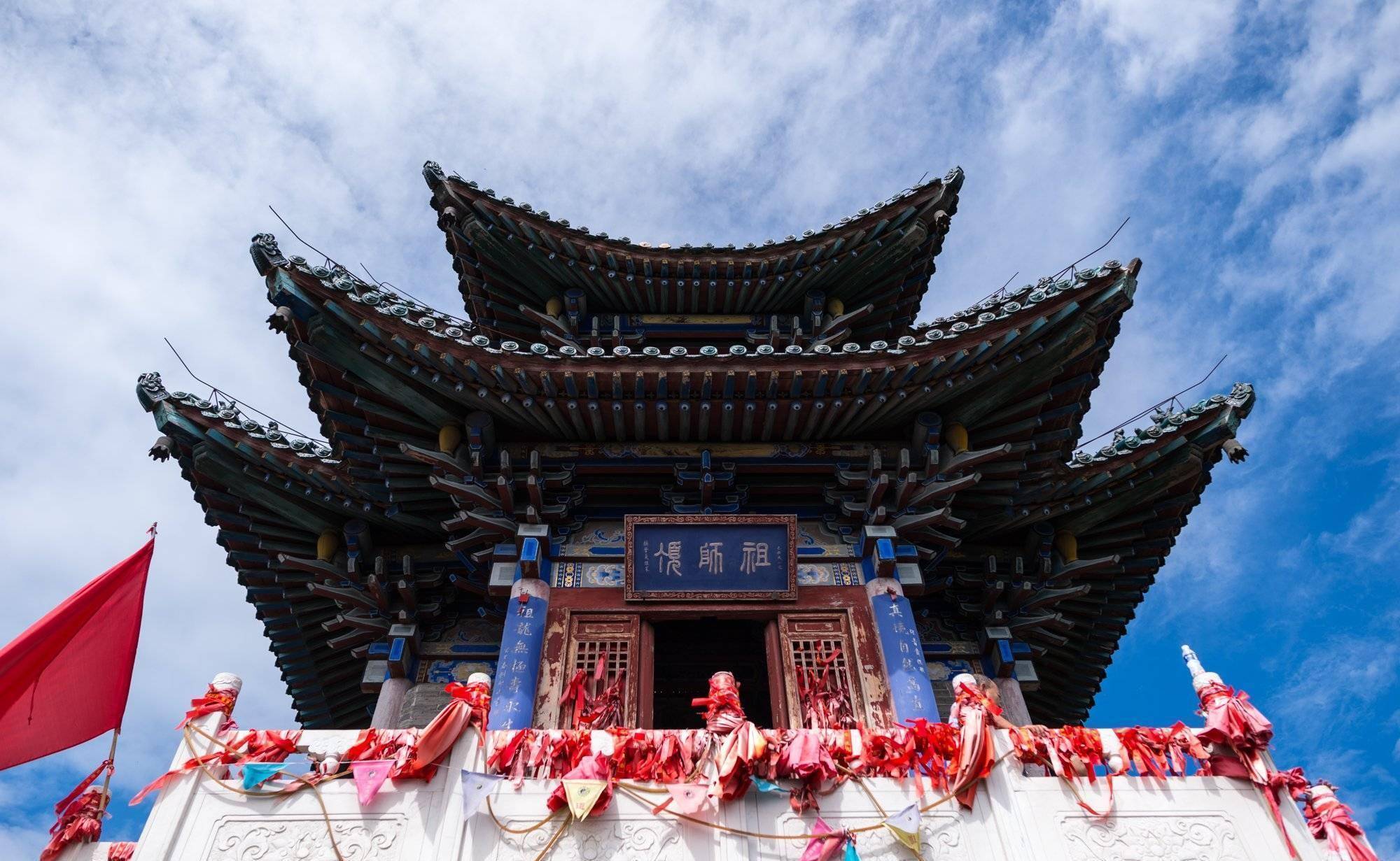 祖师殿位于云丘山神龙岭第二峰。海拔1330米。你可以从远处看到这座建筑。祖师殿由两部分组成。下为无梁殿,上有八卦。