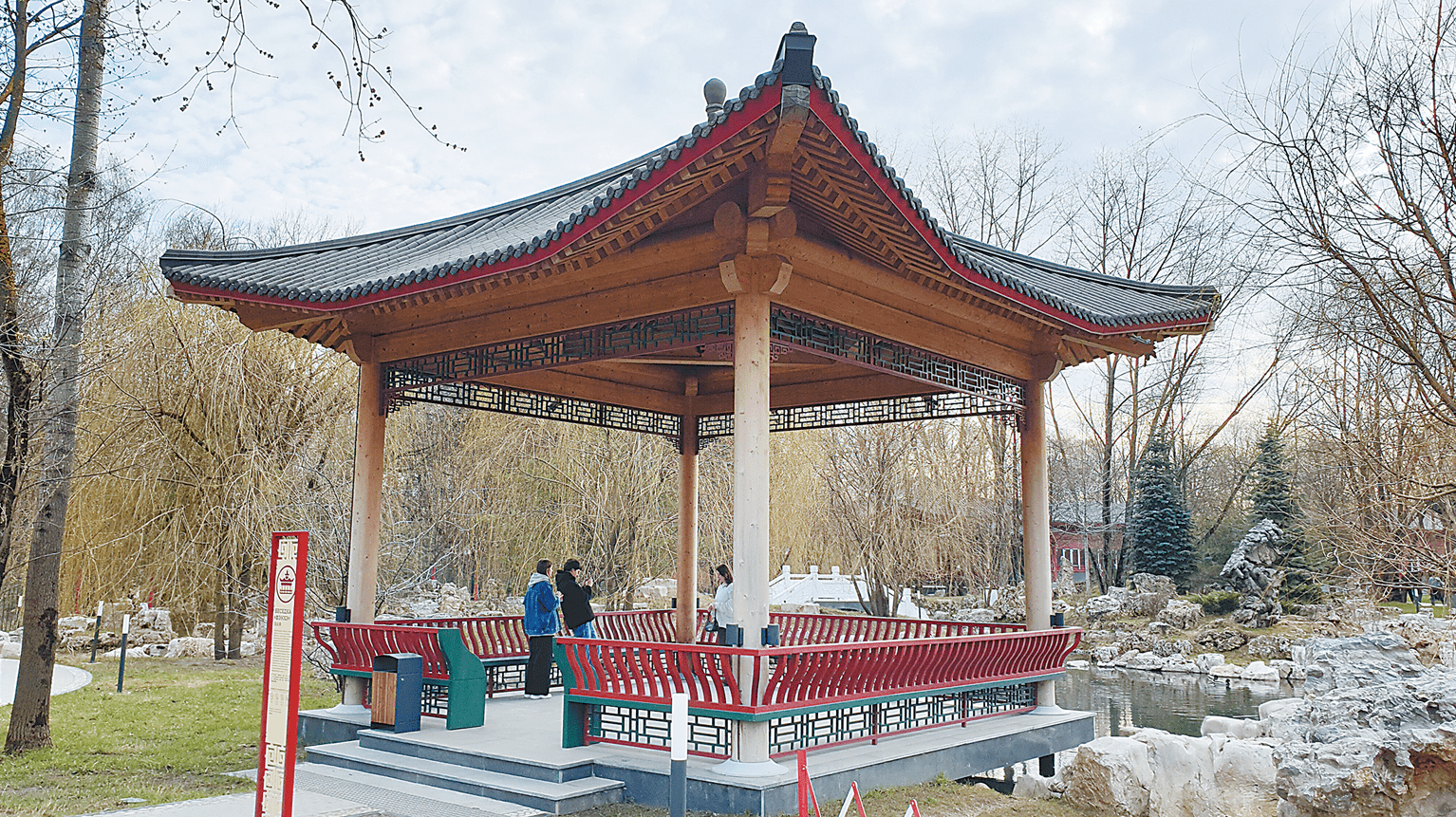 建造这座园林的想法可追溯到2000年初,直到今天才得以实现。在公园入口处,游客先穿过一道拱门,拱门装饰着灯笼和中国传说中的神兽。距离主入口不远矗立着一座中国哲学家孔子的纪念碑。园内建有几座舒适的凉亭和亭阁,可以举行茶艺表演和其他活动。所有景观都被赋予包含诗意的中国名称,如玲珑池、紫云牌坊、八仙桥等。最吸引人的拍照区是栽满柳树的人工池附近,令游人仿佛置身中国!