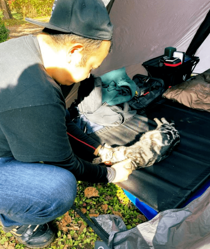 另一位网友和同事去露营,也遇到了一只非常霸道的猫猫。