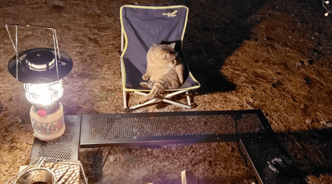 露营的椅子自己还没坐热呢,猫就坐上去了。