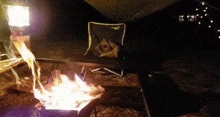 这只小橘见露营的人生起了火炉,赶紧跑过来一起烤火。