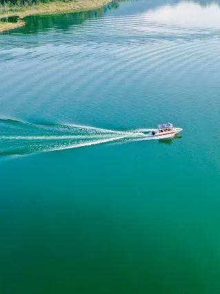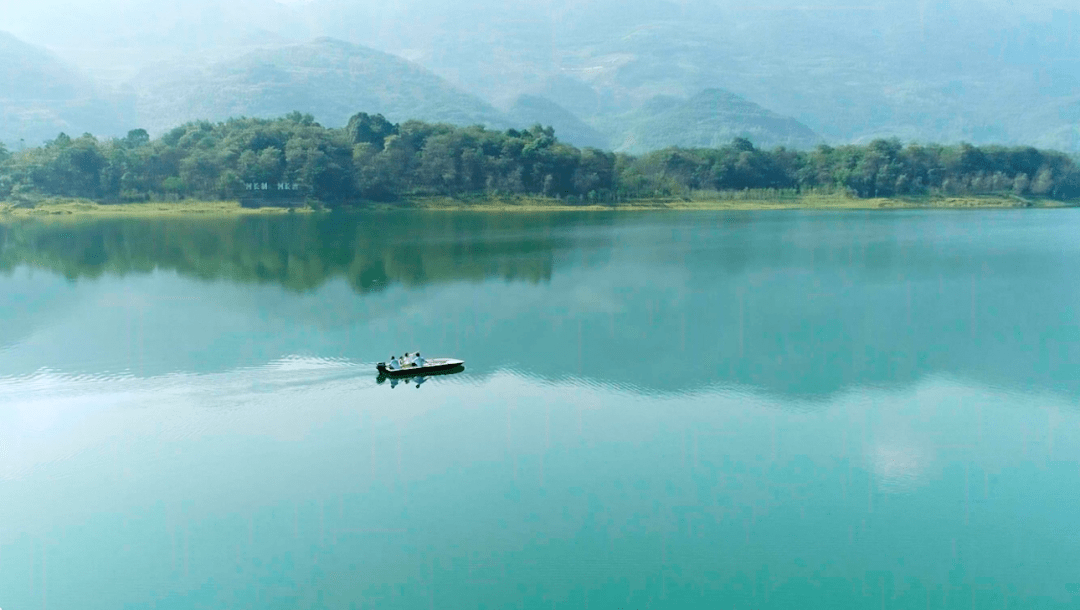 进入夏季丰水期后,天池湖开始充盈、水灵起来。湖水蓝汪汪、青幽幽,似一颗绿宝石般镶嵌在华蓥大地上,展示着中国山水的“青绿”本色。