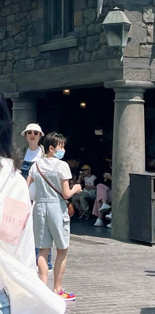 而细心的网友也发现了背景中的全红婵,小红头顶着太阳镜,戴着口罩,穿着一身蓝色的背带裤,依然活泼可爱。