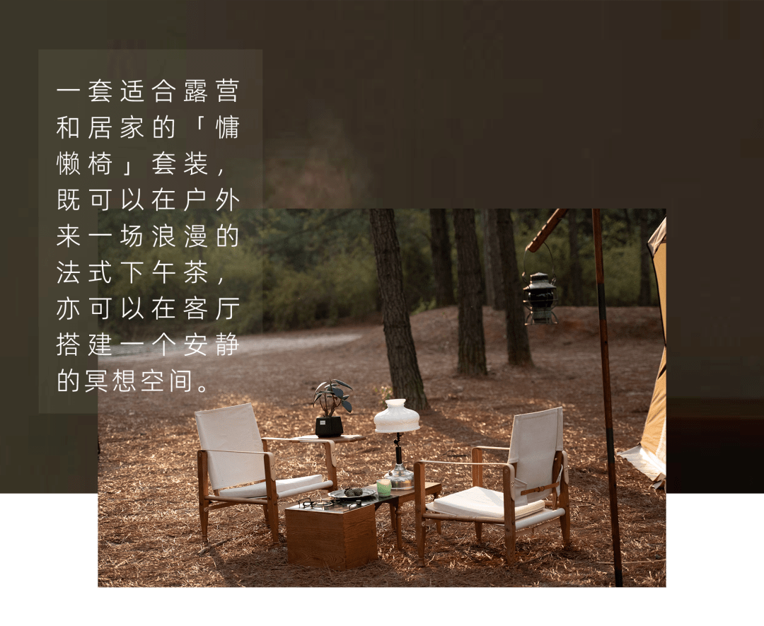 露营归来后难免有些疲惫, 趁着午后的倦意随意倚在「慵懒椅」上,背靠着日光打个瞌睡,我想没有谁能拒绝这种零成本的舒适享受吧。