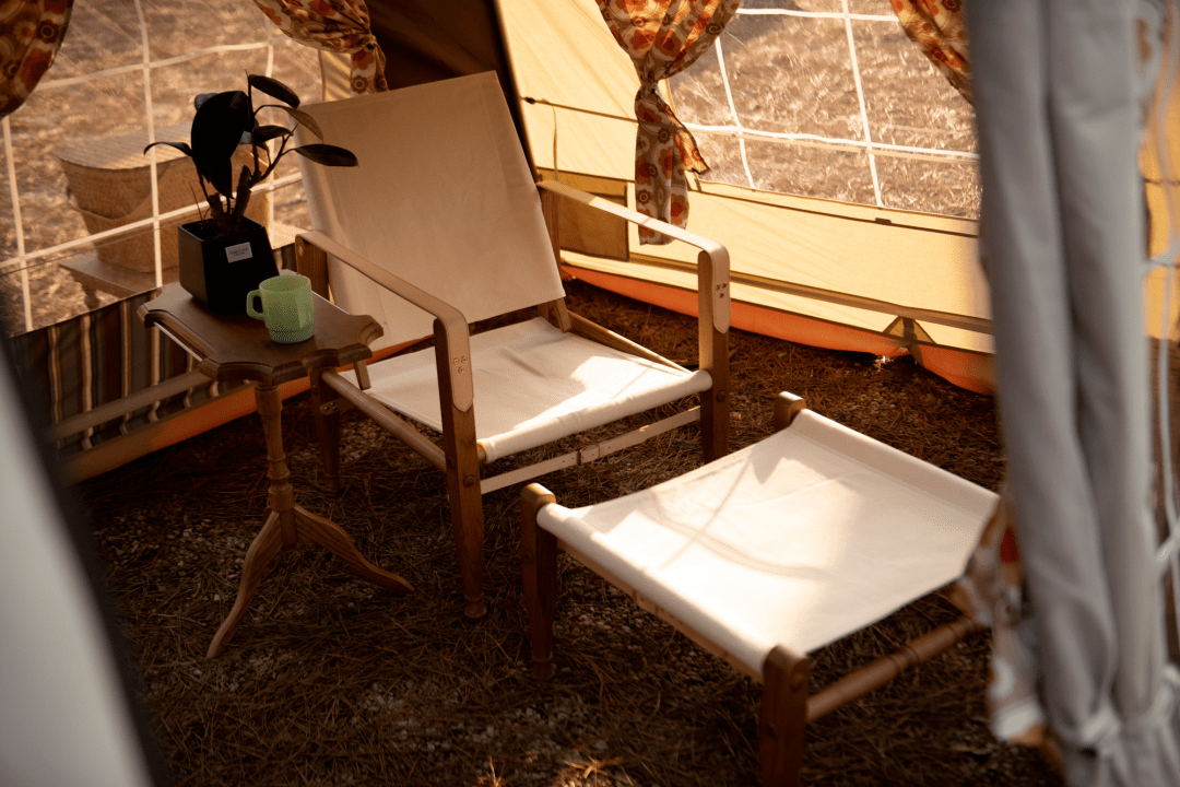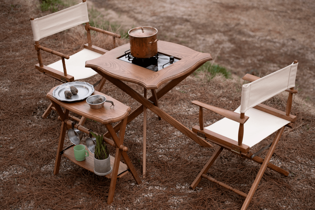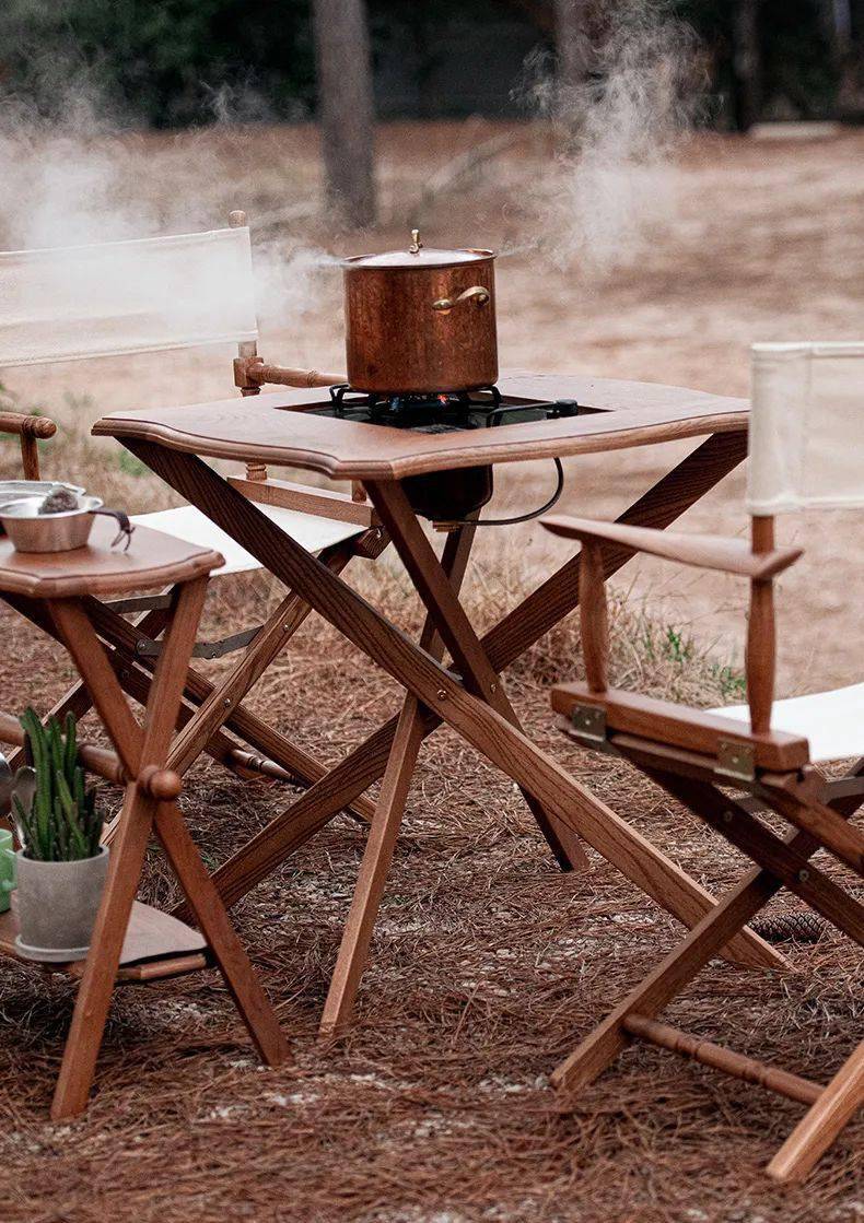 实木材质仿佛自带一种复古的典雅气质,当周围都被天然的植被包围的时候,实木材质的户外装备与环境浑然天成,似乎让人与自然之间产生的联结感更强烈了。