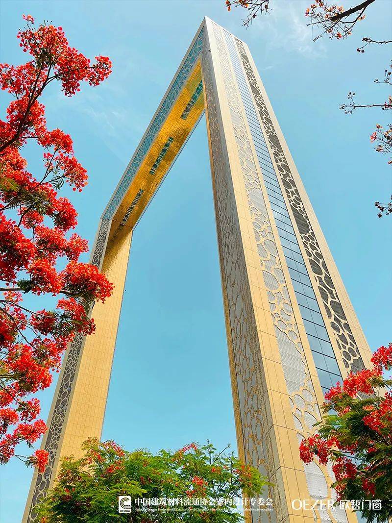 造型如镂空相框的迪拜门是前卫先锋的象征,金光闪闪的柱子,颠覆眼球的设计手法,不禁引人驻足深思。