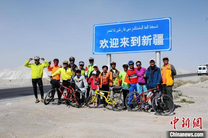 2015年8月,陈守忠带领骑友在新疆骑行。(受访者供图)