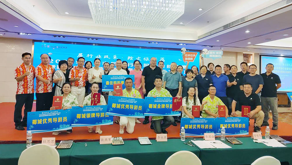 经过激烈角逐和专业评委评审,现场产生了椰城金牌导游员5名、椰城银牌导游员10名、椰城优秀导游员15名。