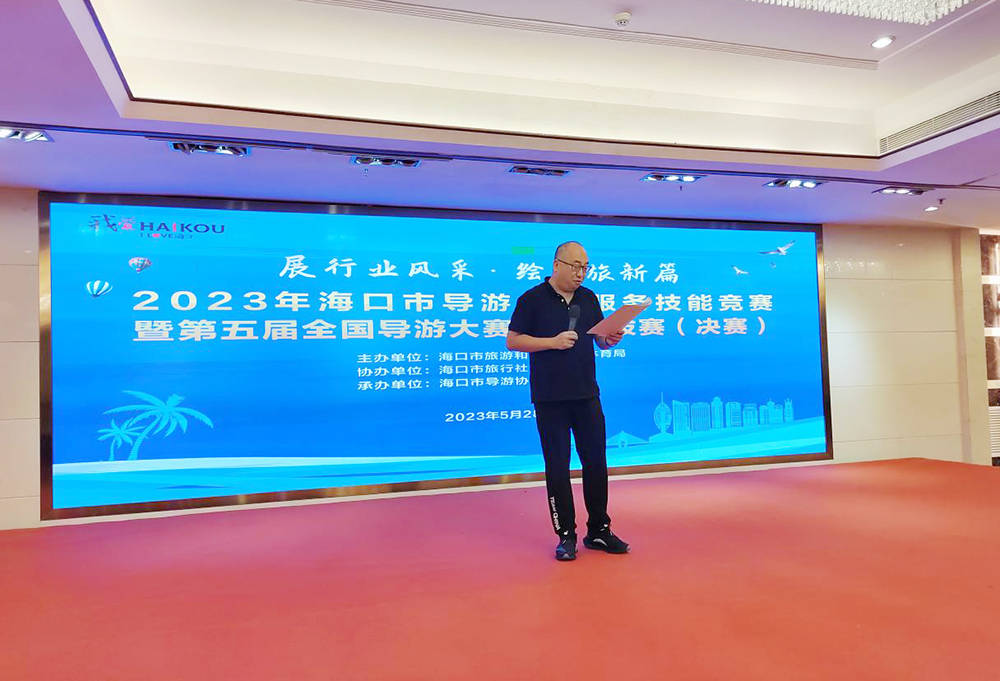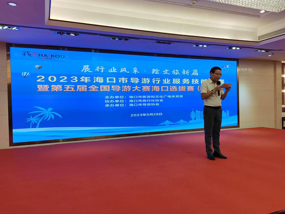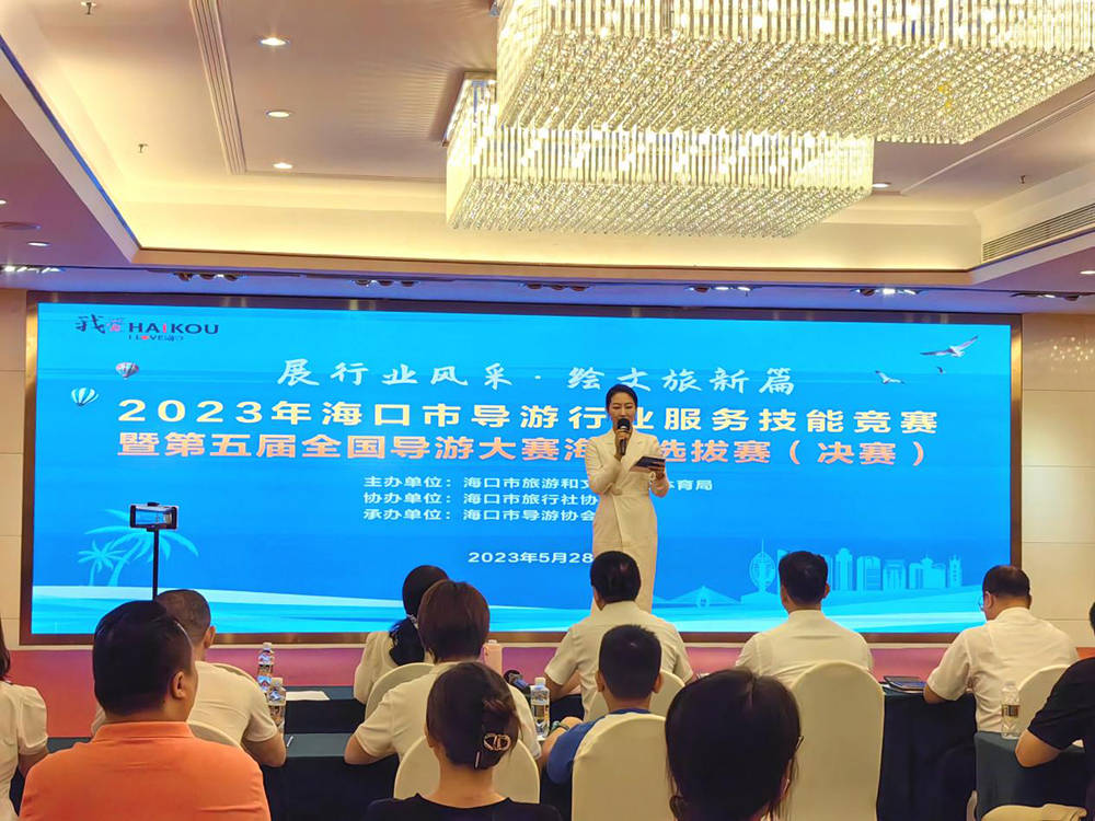 5月28日,2023年海口市导游行业服务技能竞赛暨第五届全国导游大赛海口选拔赛在海口鹏晖泰得大酒店举行。