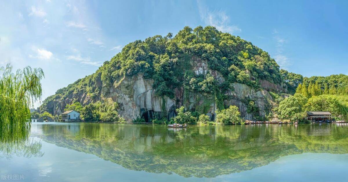 东湖不大,从汉代始,人们沿山脚开山取石,历经千百年,终于凿成几十米高的绝壁和曲折幽深的港道。可以说是“江南的山水盆景”。