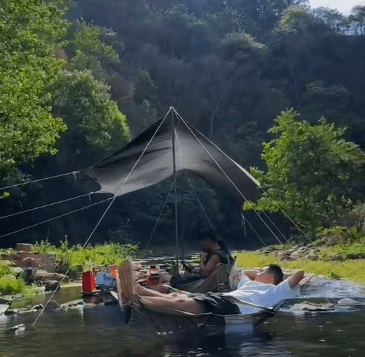 这里山清水秀,空气沁人心脾,四季皆可露营,河流清澈见底,水浅段可戏水;沿河岸山景宜人,可徒步。