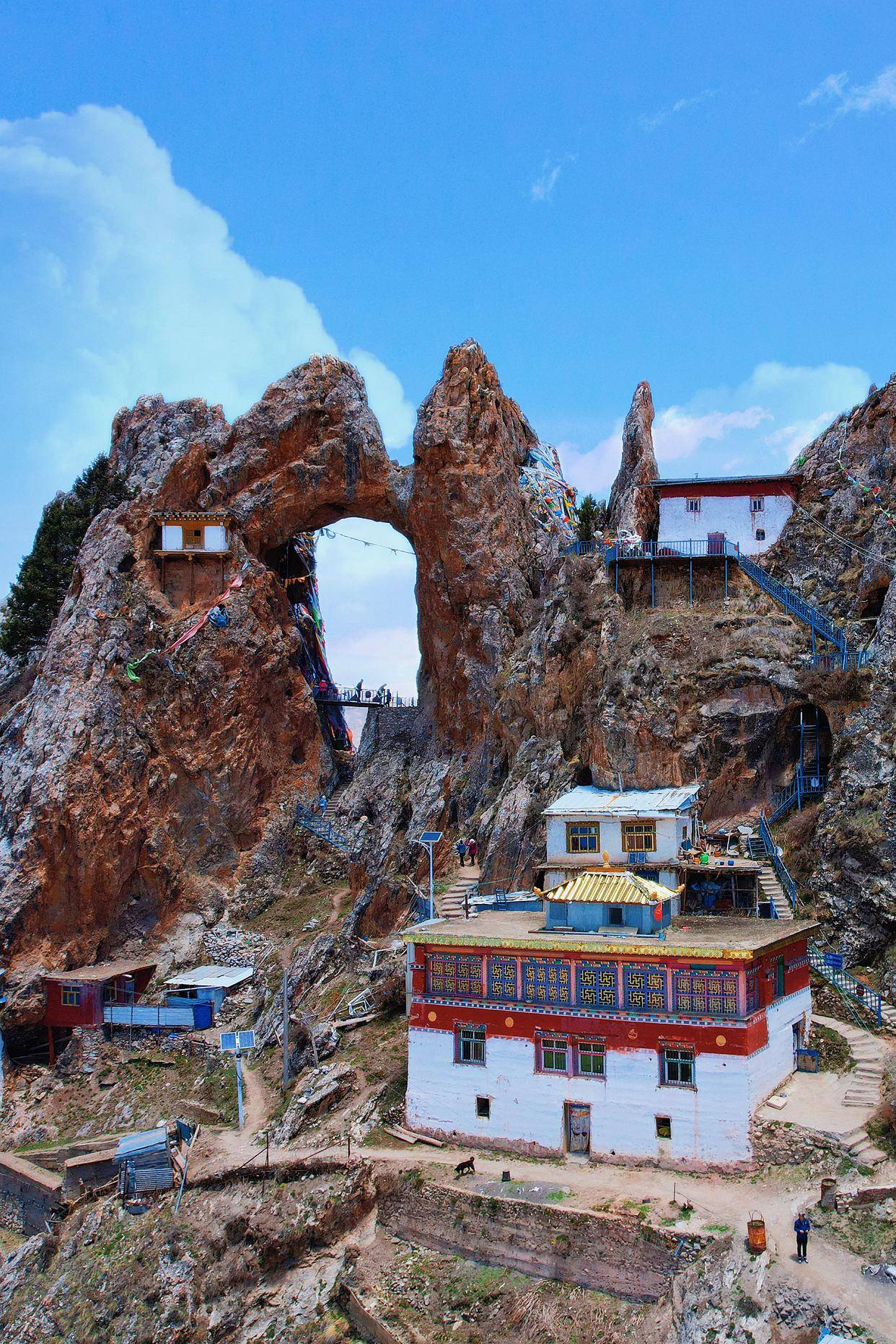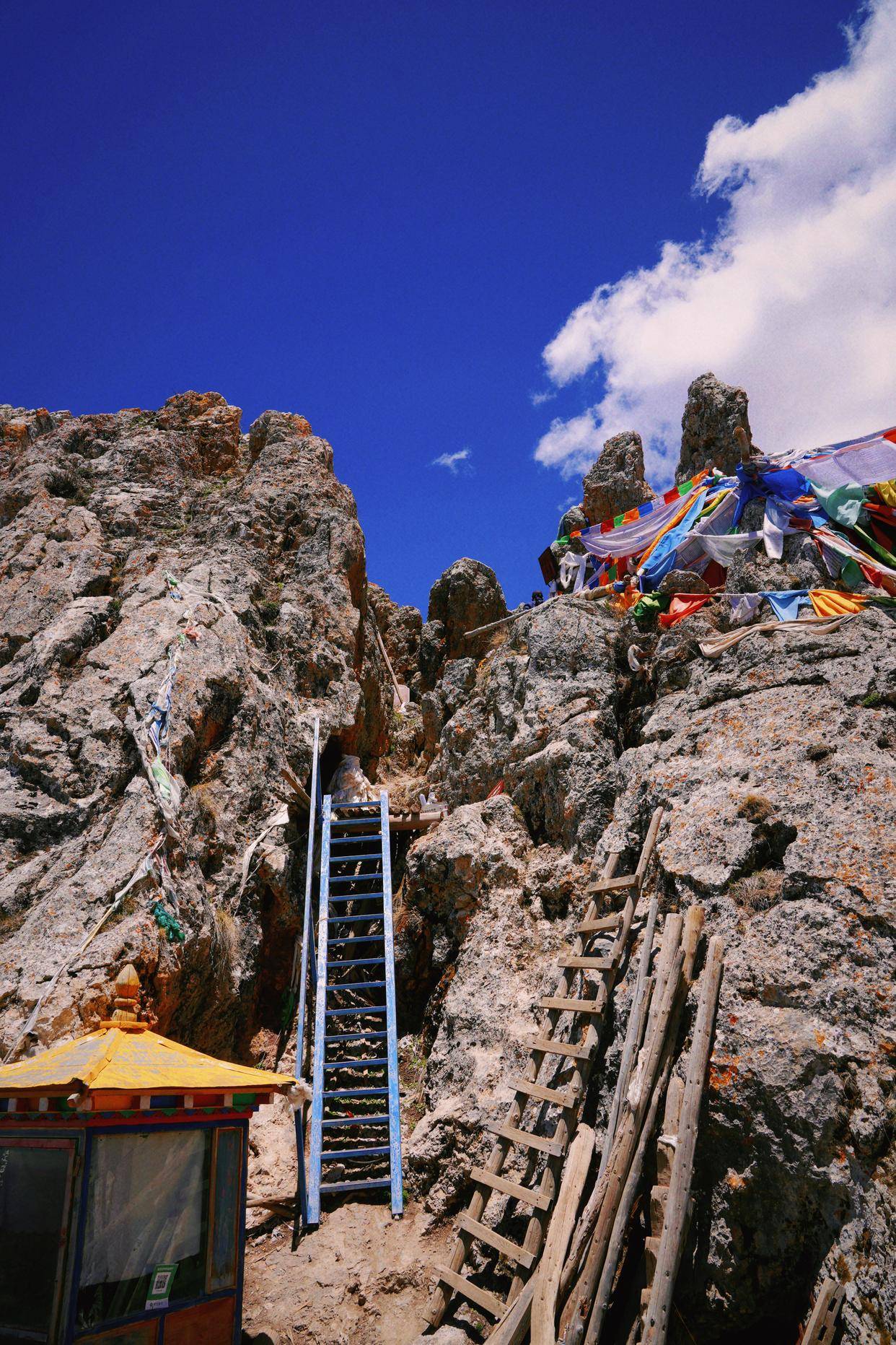 孜珠寺的网红打卡点之一,就是这里的天空之厕,修行小屋上去,从一个狭小的洞里面爬山去,才能看到,其实这里天空之厕,是寺庙的僧人用的,因为海拔特别高,现在成了一个网红打卡点。