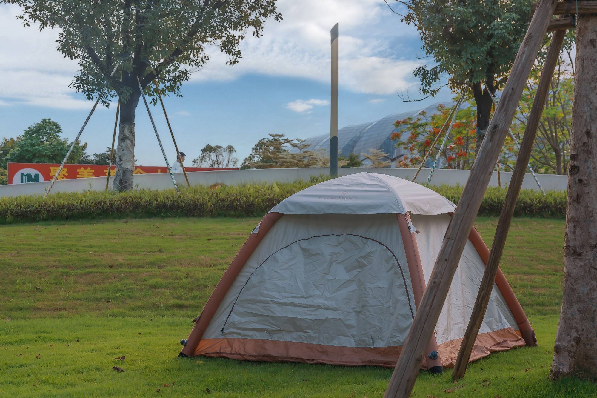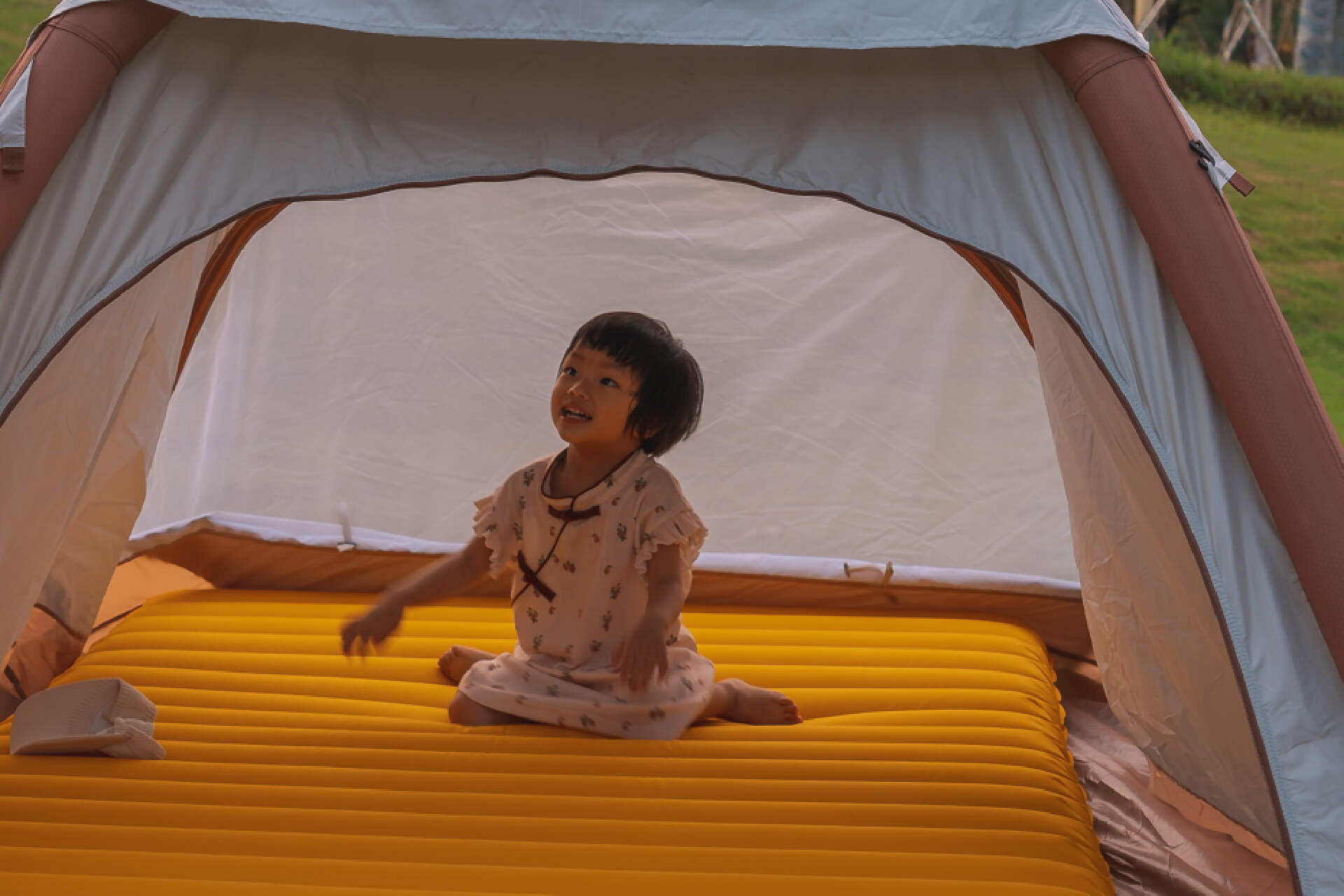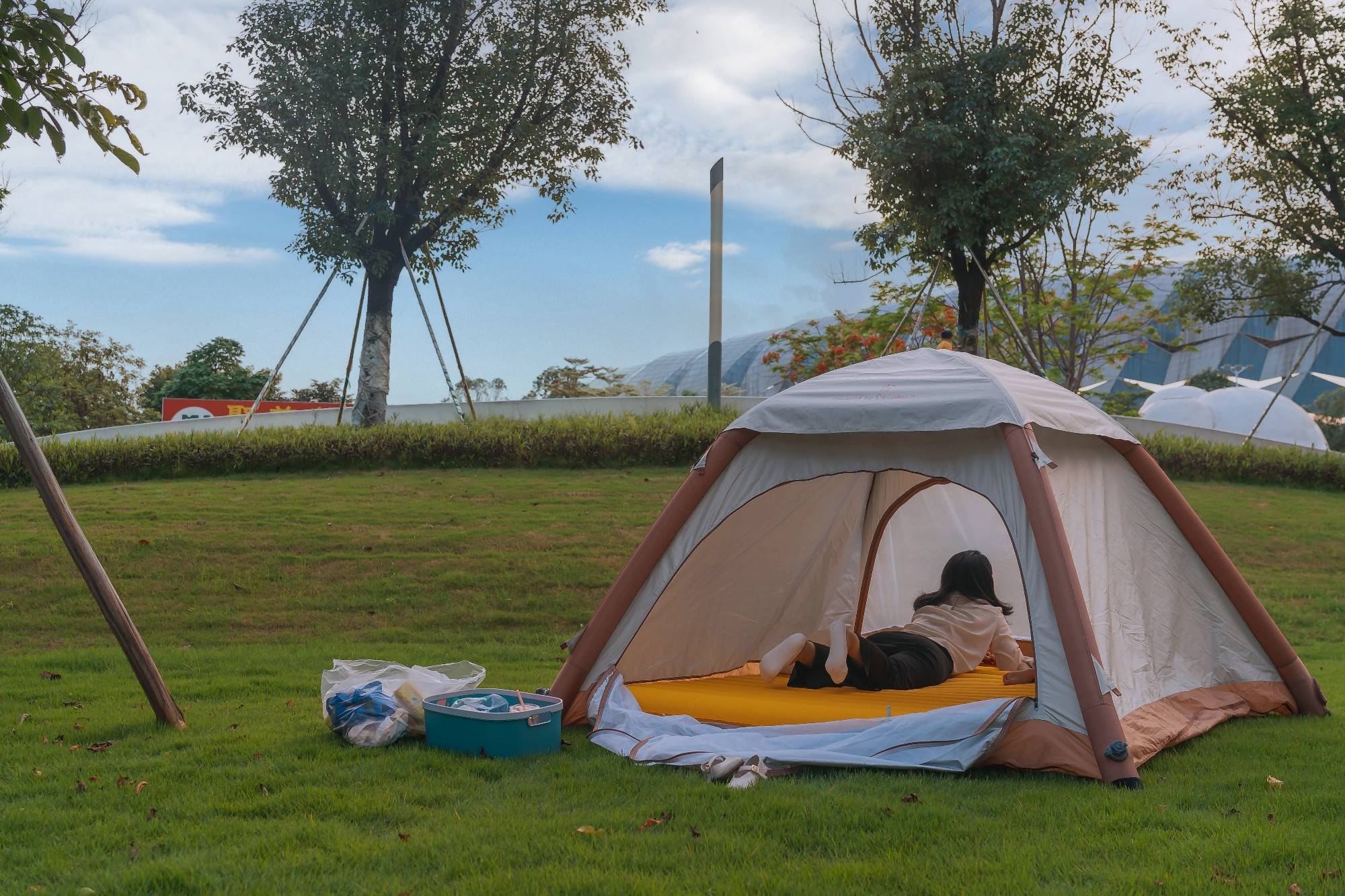也是那一次露营,让我萌生了想找一个容易搭建起来的帐篷,毕竟有时候周末会带女儿去奥体公园里玩,那边也有很多人在露营,这时候要是搭帐篷耗费个大半小时的时间,可就不好玩了。于是我问了问身边的露营大神,他告诉我现在有种充气的帐篷,只要几分钟就能搭好。