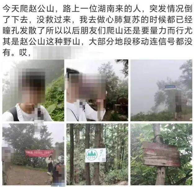 据报道,这名男子是湖南籍,与同事一同登上赵公山,当然足迹还没有到达山顶就不幸去世了。当时同行的同事和碰巧在场的几名医生都进行了紧急的心肺复苏,但最终还是无法挽回他的生命。这样的事件无疑给人们敲响了警钟,提醒人们对登山的安全要更加重视。