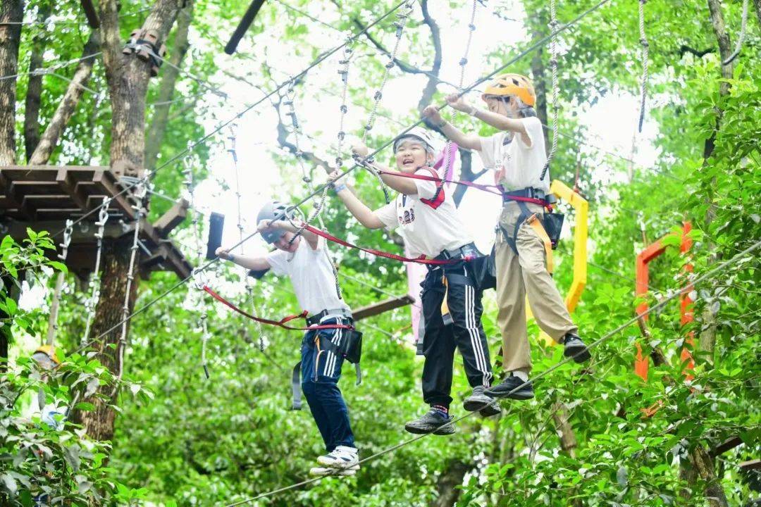 日前,记者走进光华营地,广阔的草坪、茂密的森林、古典的建筑、天然的湖泊,优质的自然环境让人仿佛走进了爱丽丝梦游仙境,皮划艇、露营、丛林探险等诸多娱乐项目一应俱全。在丛林探险项目中,小朋友们变身人猿泰山,在悬空桥梁、溜索等趣味关卡中挑战自我,感受在树林中穿梭的乐趣,充满了冒险、挑战,让不少孩子直呼过瘾。