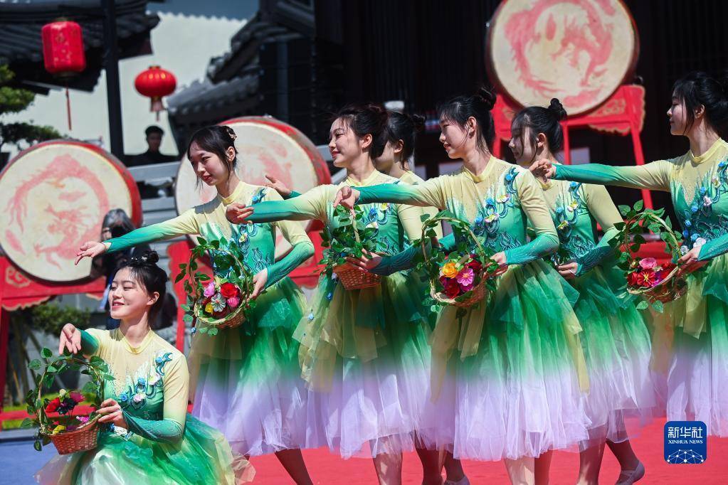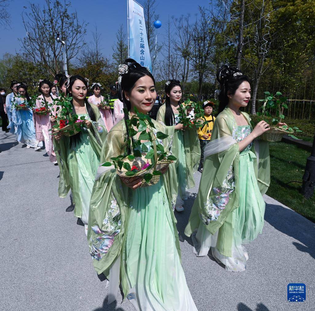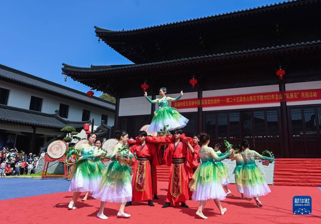 当日,浙江湖州第二十五届含山蚕花节在湖州市南浔区善琏镇含山风景区举行。本届含山蚕花节活动分为守望传统、赴约祈福、演绎美学、寻味美食、音乐狂欢、共赏艺术等六个篇章,陆续开展祭蚕神、拜蚕娘、祈福文创展览、音乐节等系列活动,吸引众多游客前来踏青“轧蚕花”,体验当地春季传统非遗习俗。