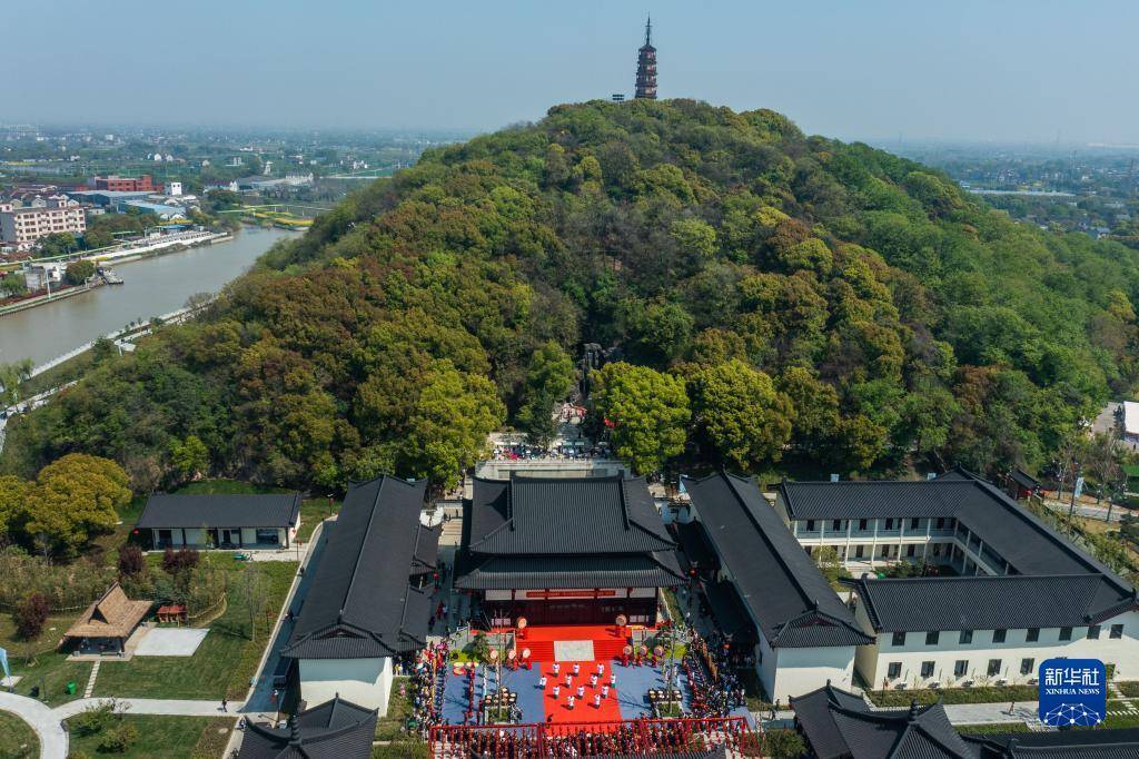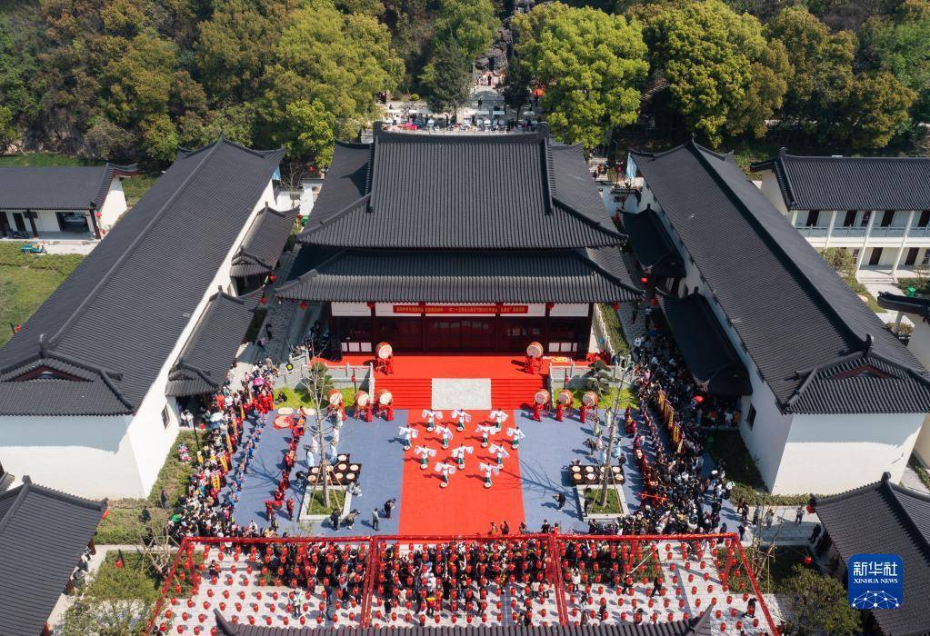 4月2日拍摄的含山蚕花节“祭蚕神”民俗表演(无人机照片)。