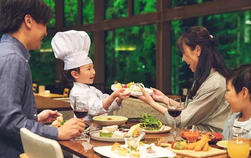 在星野TOMAMU度假村的Nininupuri森林餐厅内,一家人享用过北海道的特色料理之后,再一起快乐地分享孩子们亲手制作的甜品。孩子的内心会有巨大的成就感,家长们也可以真切感受到孩子的成长。