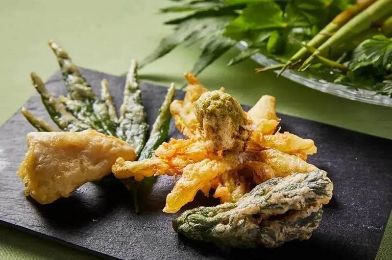 楤木芽焗汤、意式炸山菜、焖羊肉配行者山蒜、艾蒿甜品四道料理所使用的食材,都是北海道当季最新鲜的山菜。这些山菜也是药草,其独有的苦味和涩味,自古被认为是清火去毒的良方。山菜配上星野农场自产的乳制品,碰撞出北海道特有的春日风味。