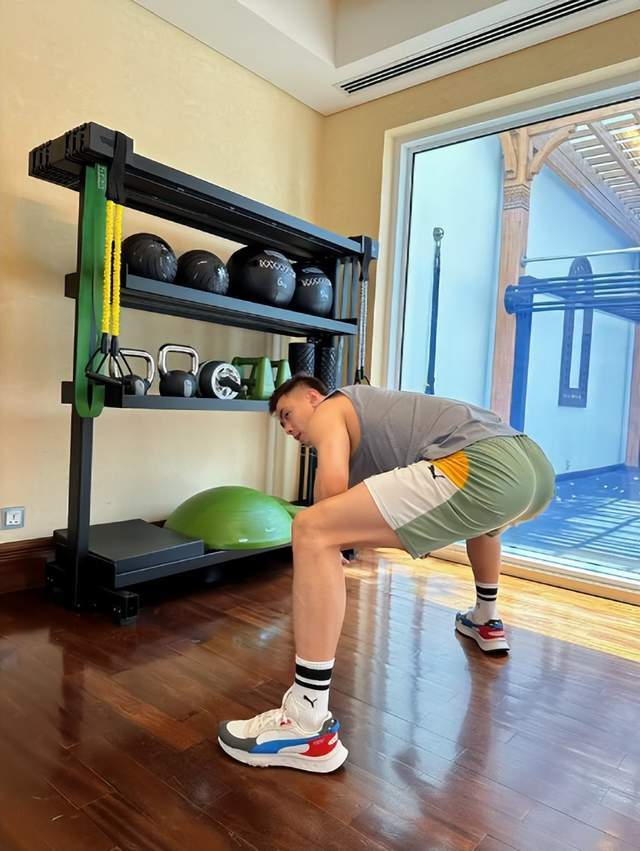 此外,不论游玩安排如何,赵继伟每天都会自己在健身房训练。