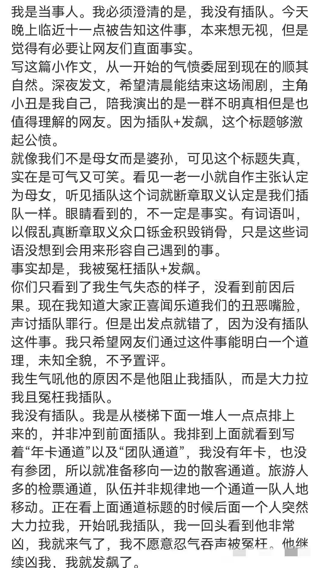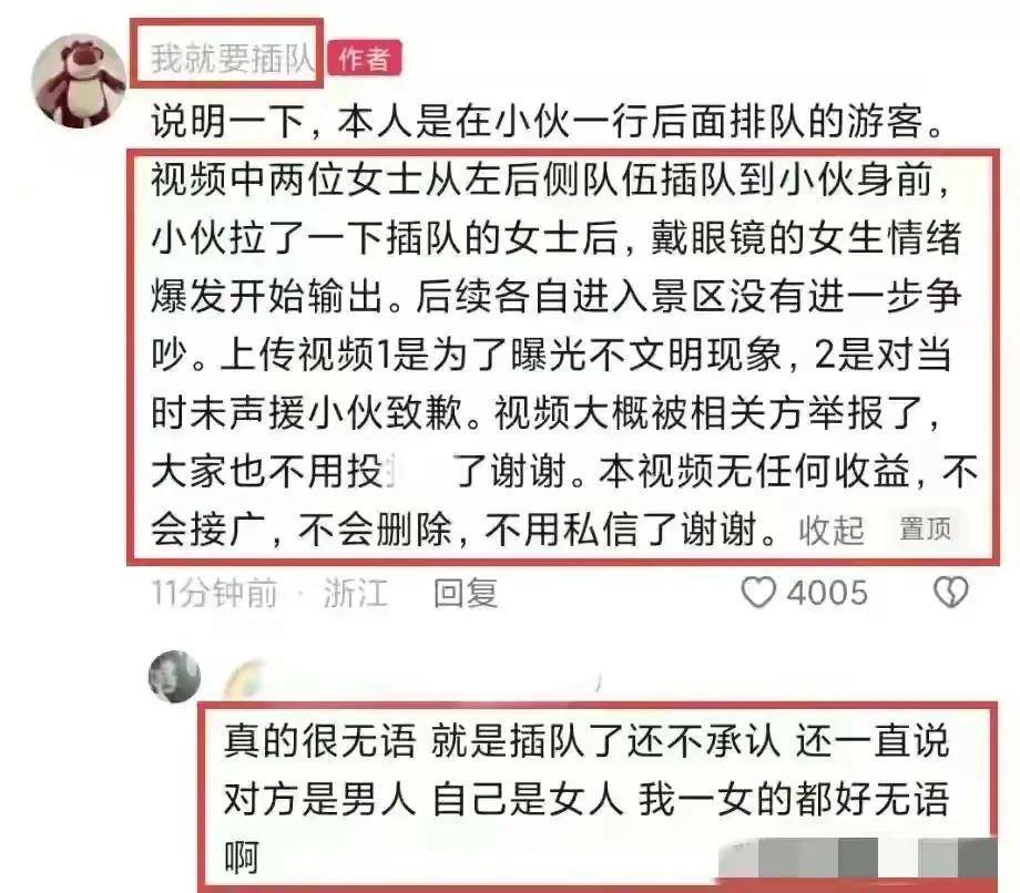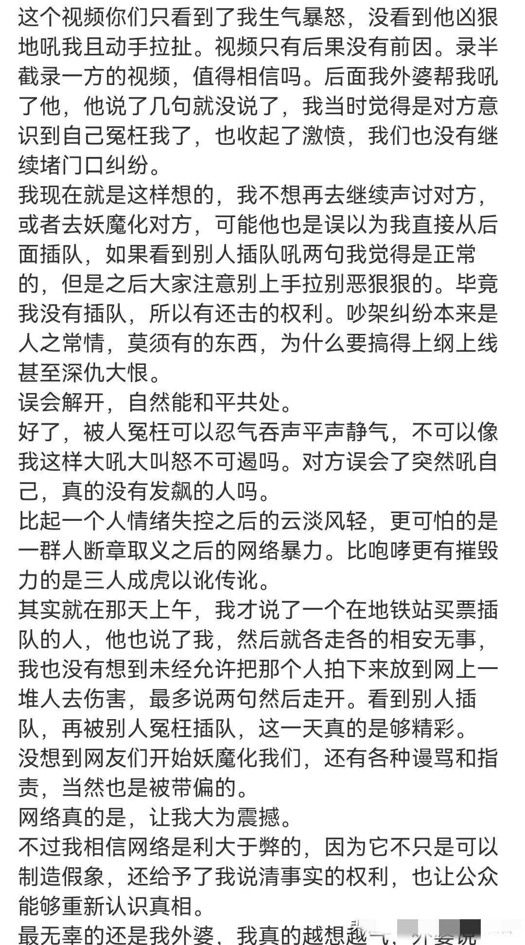 随后,一名疑似插队的女子发文称:她们是两个婆婆和一个外孙,因插队不高兴被人欺负!