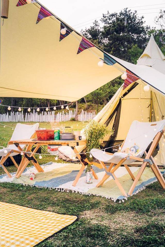 其次,可以选择一些便携式家具,例如月亮椅和折叠蛋卷桌。