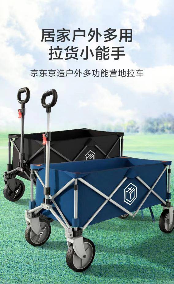 2020年,京东京造洞察到露营的市场需求,随即展开露营场景的全品类布局。团队在市场调研中发现,露营车不单是解决从车后备厢到营地“最后一公里”的重要工具,消费者还喜欢用露营车来放置一些不太方便携带的用具设备,甚至经常有小孩坐在露营车里被家长拖着玩耍。因此,京东京造选择将露营车作为首批重点开发的产品之一。
