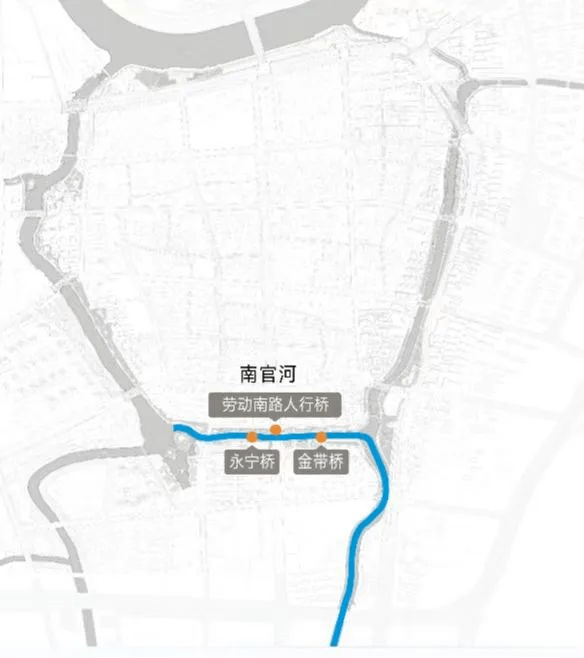 南官河段建有桥梁3座,分别是永宁桥、劳动南路人行桥、金带桥。
