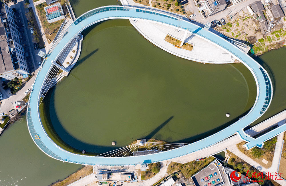桥长280m、桥宽4-14m不等,桥面由不规则的几何形构成,凸显简洁、现代风格,是连接老城区、东浦未来社区和永宁江绿道的重要交通枢纽。