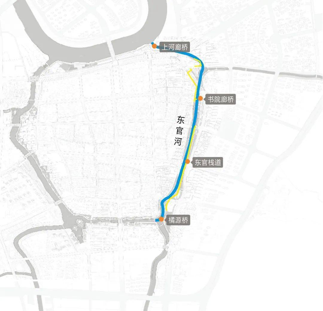 东官河段建有桥梁4座,分别是橘源桥、东官栈道、书院廊桥、上河廊桥。