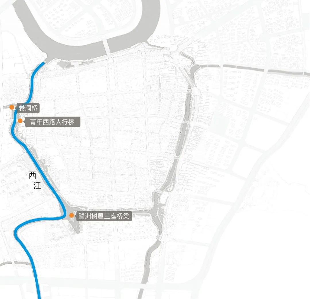 西江段建有桥梁5座,分别是卷洞桥、青年西路人行天桥、鹭洲树屋三座桥梁。
