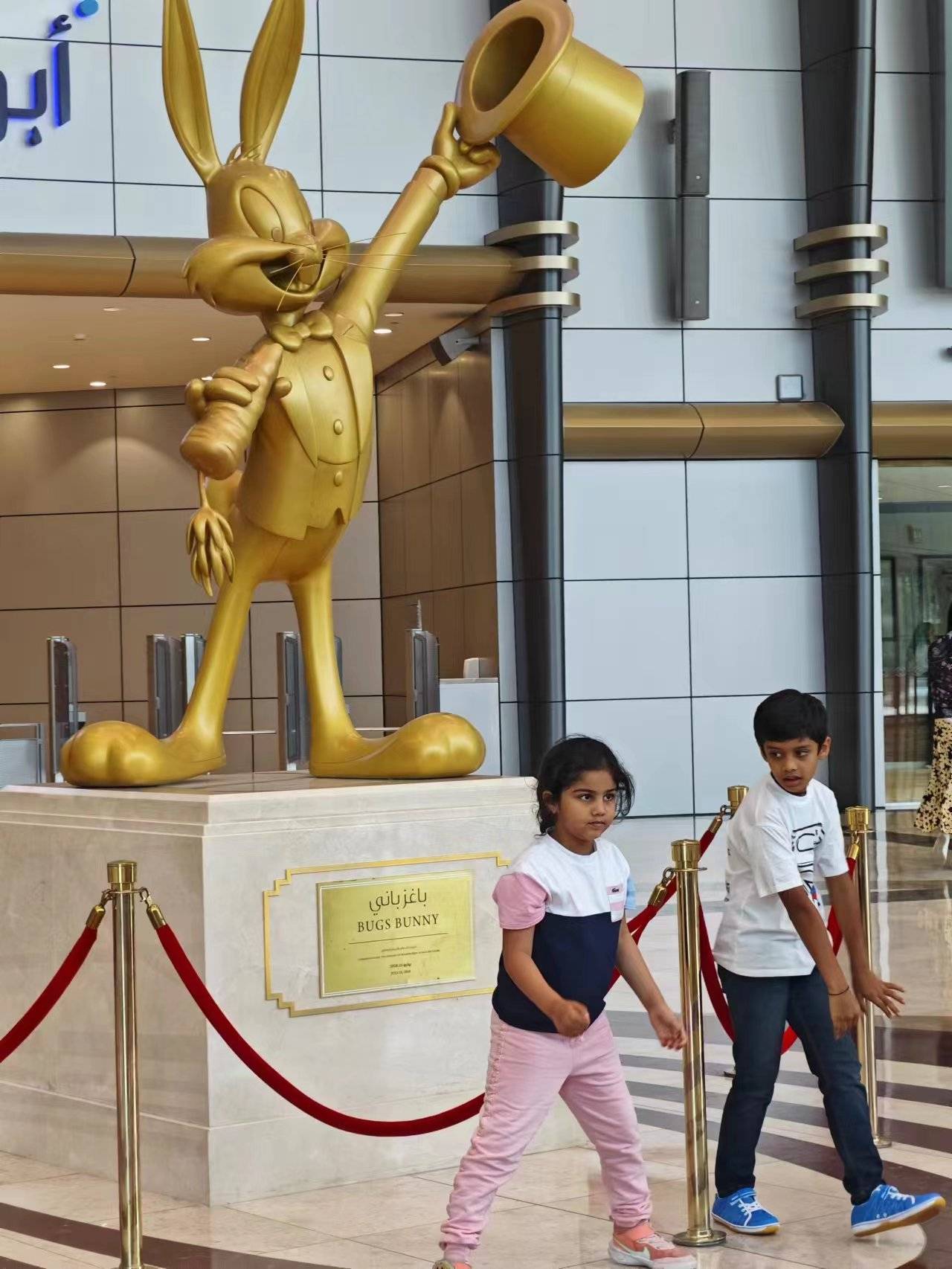 全空调主题乐园阿布扎比华纳兄弟世界(Warner Bros. World™ Abu Dhabi)则是另一个适合夏日全年龄畅玩的大IP。据介绍,这座室内主题乐园斥资10亿美元、花费了11打造完成,金色的邦妮兔雕像脱去帽子、手拿一根金色萝卜,站在广场中央欢迎游客的到来。