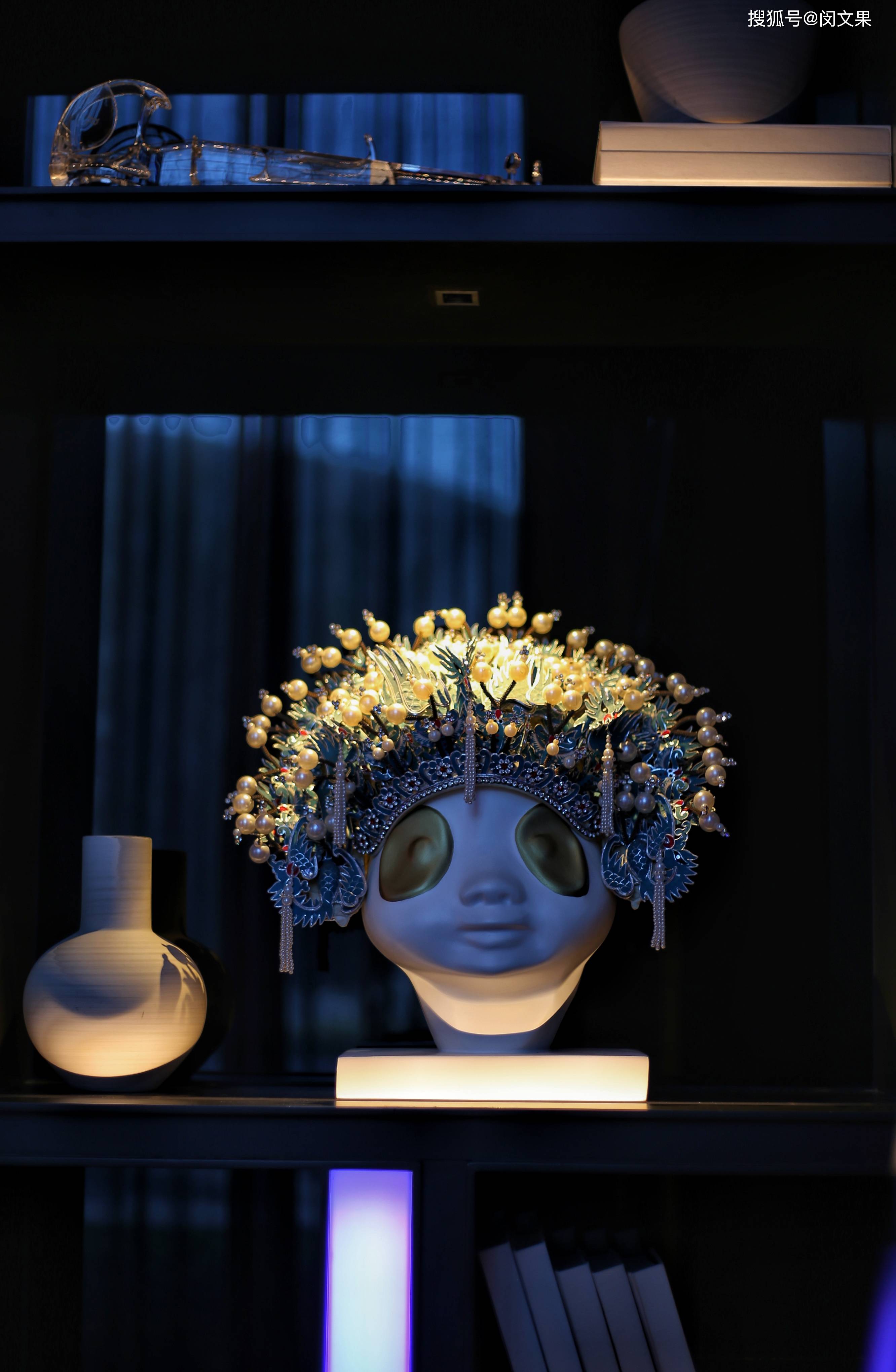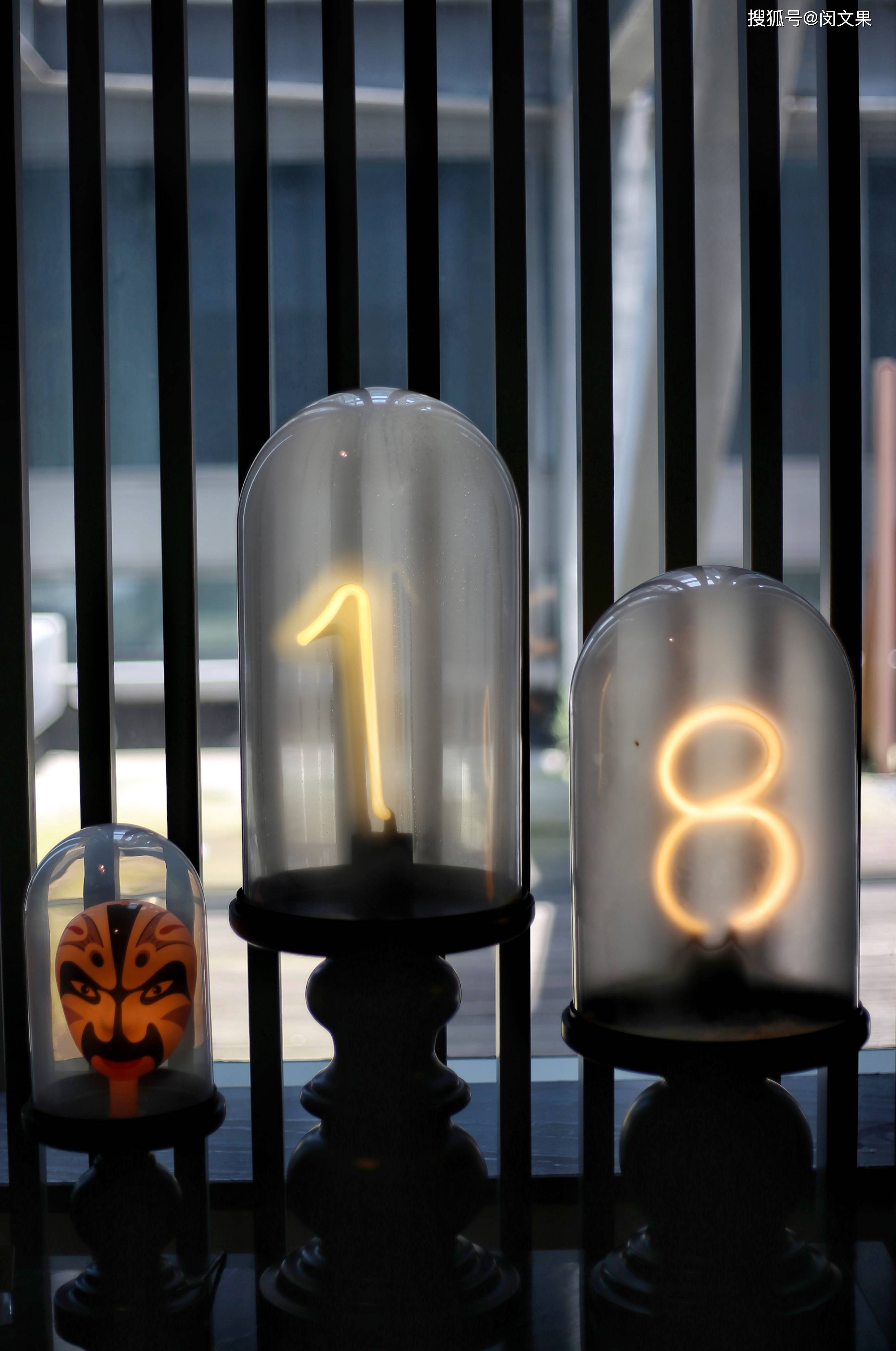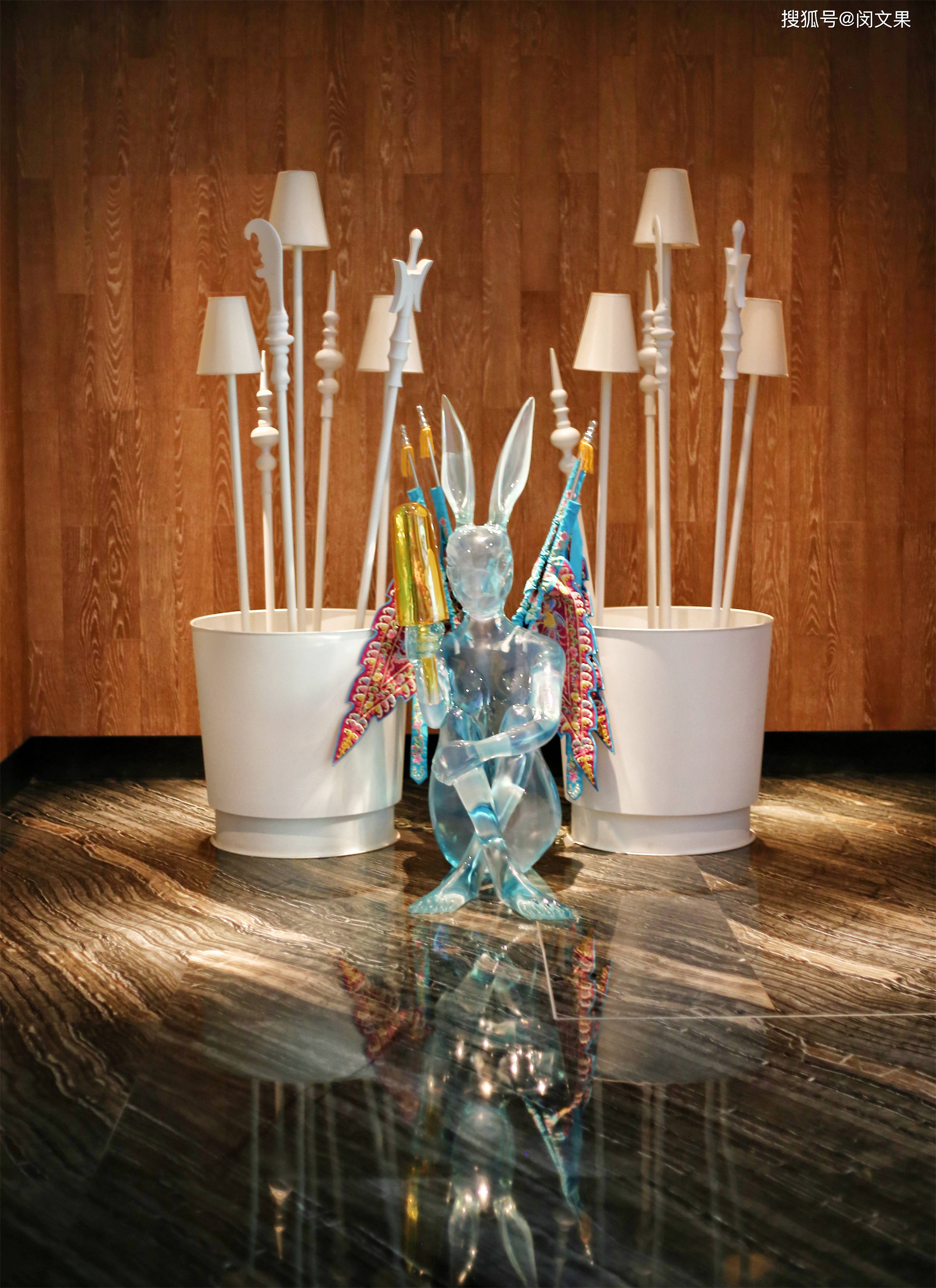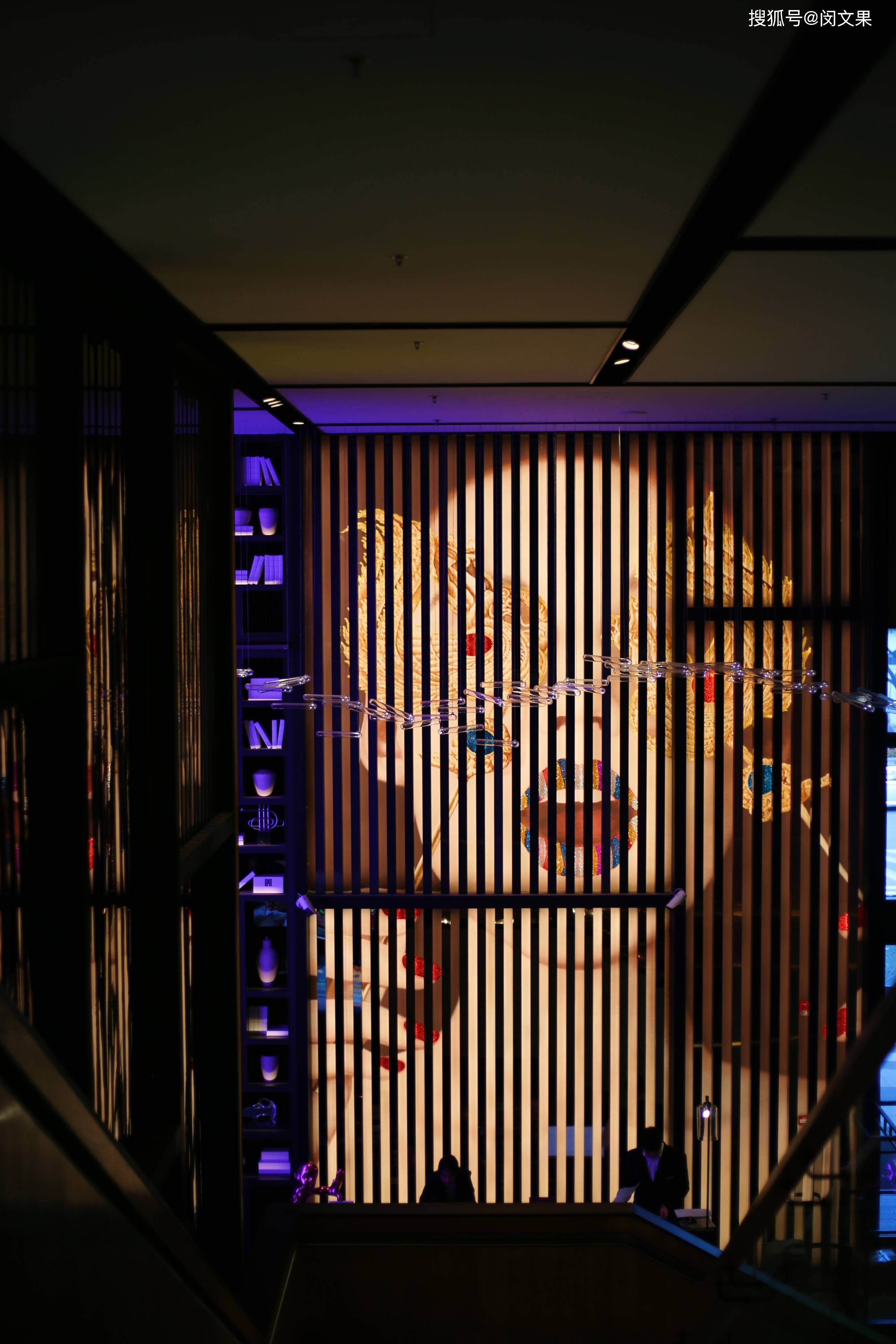 还没进入大堂,一个明黄色的半透明盒子就映入脸帘,大门外马赛克拼接而成的戏剧脸谱透露出浓郁艺术氛围,还没真正抵达室内就已让人眼前一亮。进入大堂,这个拥有两层挑高的空间,工业风格的木墙与丝绸质地的戏曲绘画相互碰撞,头顶的装饰吊灯,让人联想起戏曲舞台上行云流水般的翻飞长袖。大堂check in区域光影变幻,炫酷无比,夜晚的时候更显潮流魅力。这里还有一个休息区域,搁架上摆满艺术摆件,其中不乏戏曲相关的。