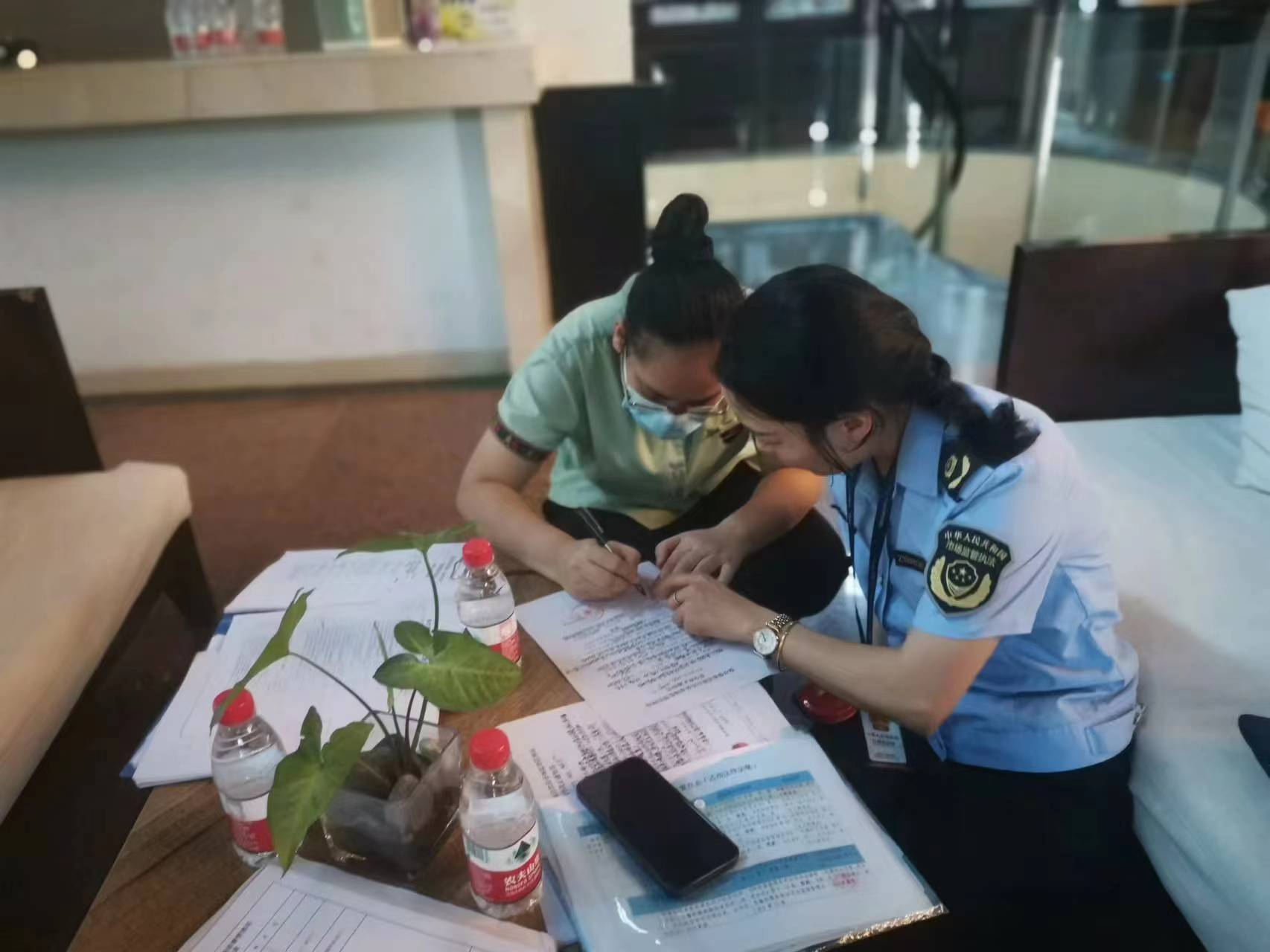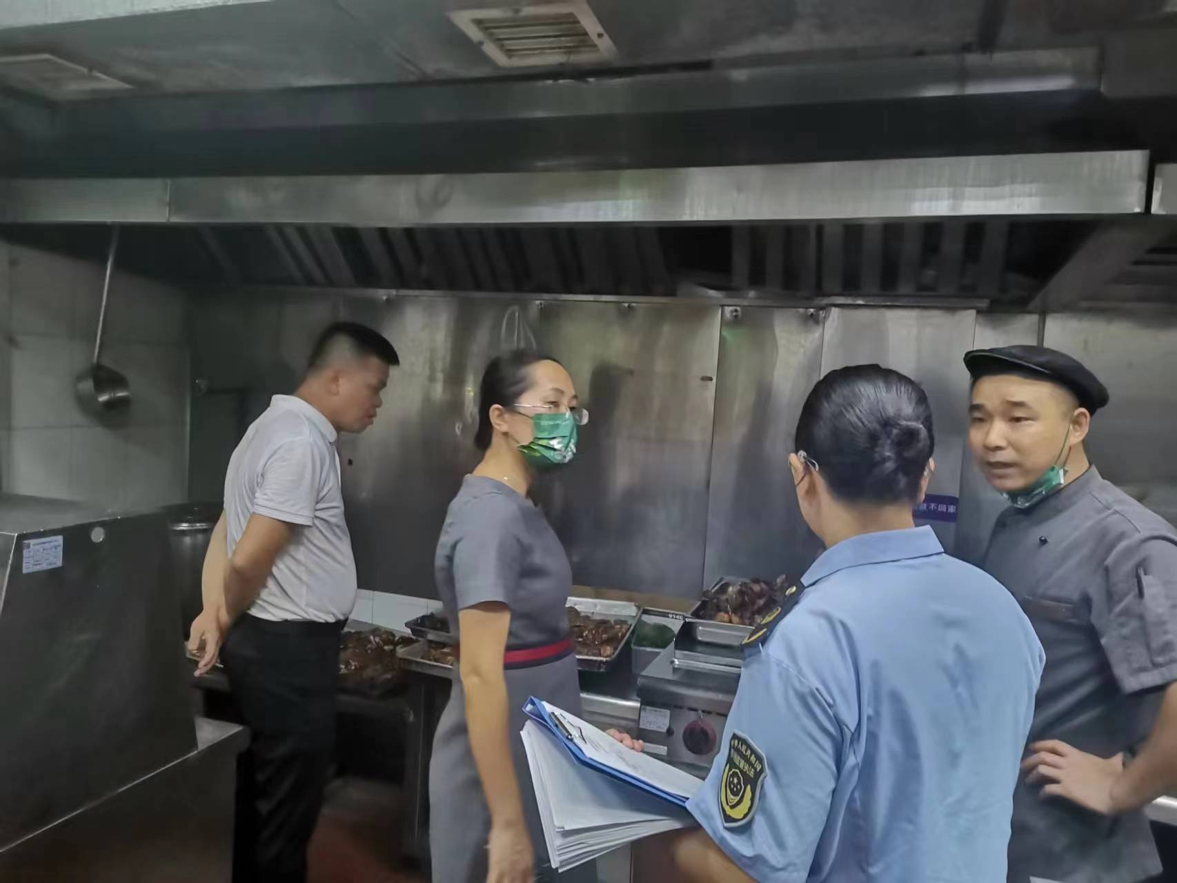 王刚一行人先后来到海南保亭保泉开发有限公司宝亭荔苑温泉酒店、海南天上人间度假酒店有限公司七仙岭君澜度假酒店,围绕企业食品安全主体责任、反食品浪费法等方面落实情况为重点开展督导。在荔苑温泉酒店,王刚重点查看了“日管控、周排查、月调度”台账记录,并现场逐一检查餐厅反浪费宣传情况、厨房卫生环境、餐饮具的清洗消毒及存放情况等。现场检查发现,该酒店后厨存在卫生死角未定期清理、餐饮具清洗不到位等问题。执法人员当场下达《责令整改通知书》,要求酒店负责人严格落实食品安全主体责任,立行立改,提升景区旅游酒店形象。