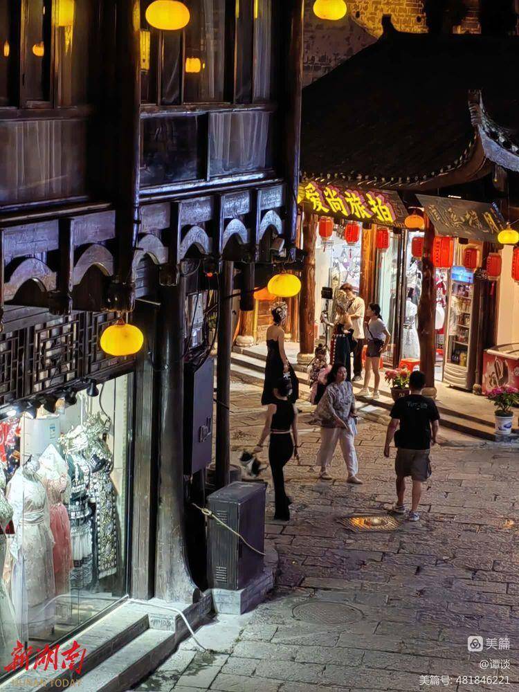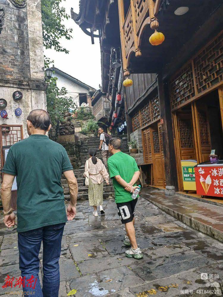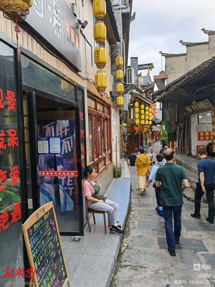 穿过这道瀑布后,就到了我前几次来都攀爬过的天梯般的叠级而上的青石板老街了。我们第一次光顾这里时,是入住在一个供销社办的小旅店,小旅店现今已经不见踪影了。老街上的商铺,外观虽旧,货架上摆放的商品,却十分的新潮。一路走来,一路听陪同我们的永顺县委宣传部部长老陈介绍:随着电影《芙蓉镇》的播映,拍摄地王村渐渐在世人面前撩开了神秘的面纱,这个边远的深山小镇,一时声名大震,每年来这里的游客猛增。2008年,县里便正式将王村改名为芙蓉镇。尽管近三年,受疫情影响,外出旅游的人大减。就是在这样的情况下,芙蓉镇去年的旅游收入仍然达到了1.4个亿。如今,平均每天的游客有一万二、三千人。今年全镇的旅游收入,估计能突破三个亿。散落在全镇各处的8000多张民宿床位,天天爆满。