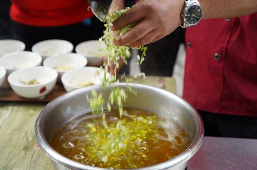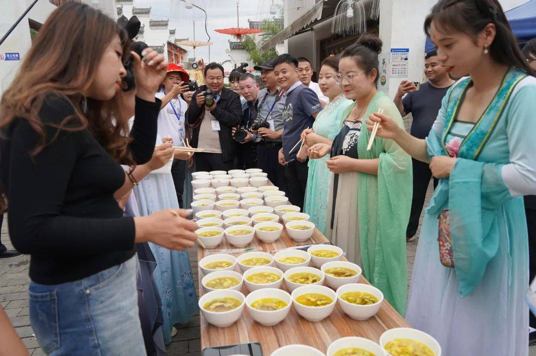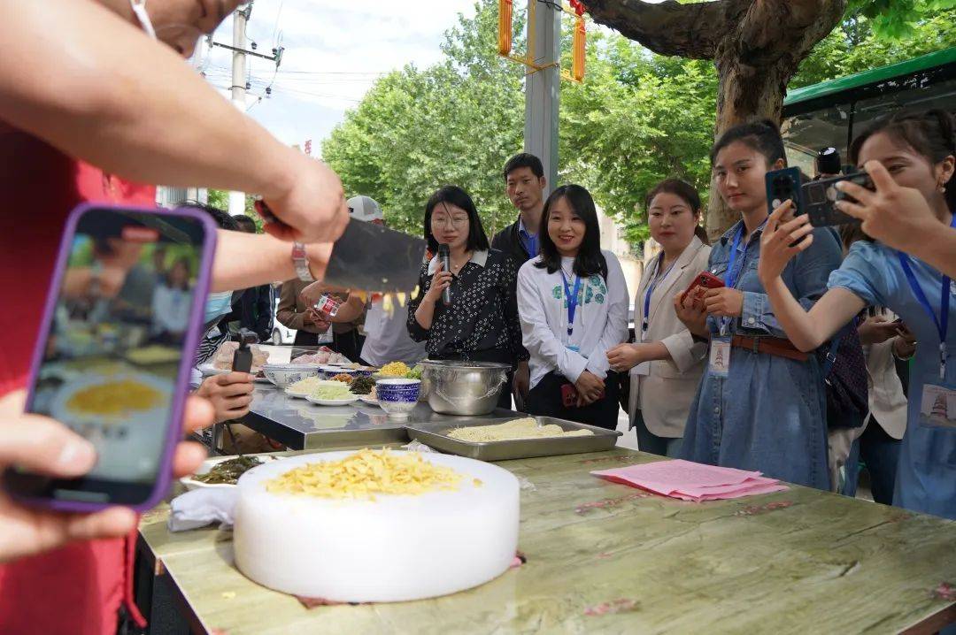 在后稷餐厅,网络达人现场体验陕西省非遗项目《武功旗花面制作技艺