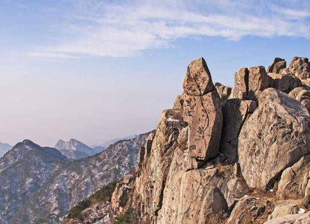 看日出是不少人游览泰山一定要完成的人物,而日观峰位于玉皇顶的东南边,也是观日出的最佳地点,很多游客会选择在此地观看日出。日观峰上有不少石刻,如今已成为泰山的重要标志之一。