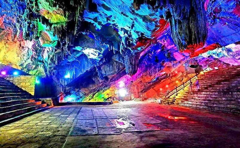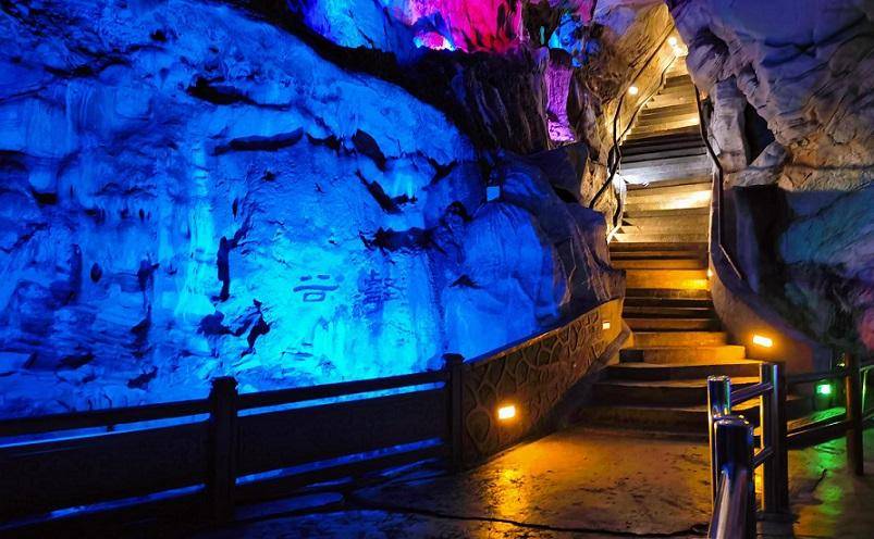 入口为下洞,好似一座大厦,名为海屋大场。入洞后全程约千余米,有石乳、石柱、石幔、石花等景观。拾级而上,可达海王厅,又称天蓬大场,为全洞之精华,周围还有地道洞、七巧洞、棋盘洞、一线曙光洞等,可谓琳琅满目、目不暇接。