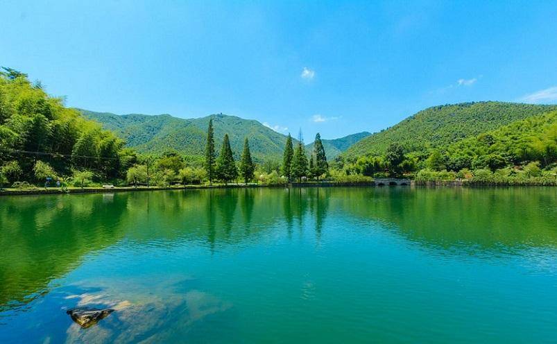 由于独特的地形地貌,景区内清溪流泉汇聚成潭,有砚池、双龙潭、梅影潭、镜池、凤池、缀星池等众多水景,溪水潺潺,常年不断。