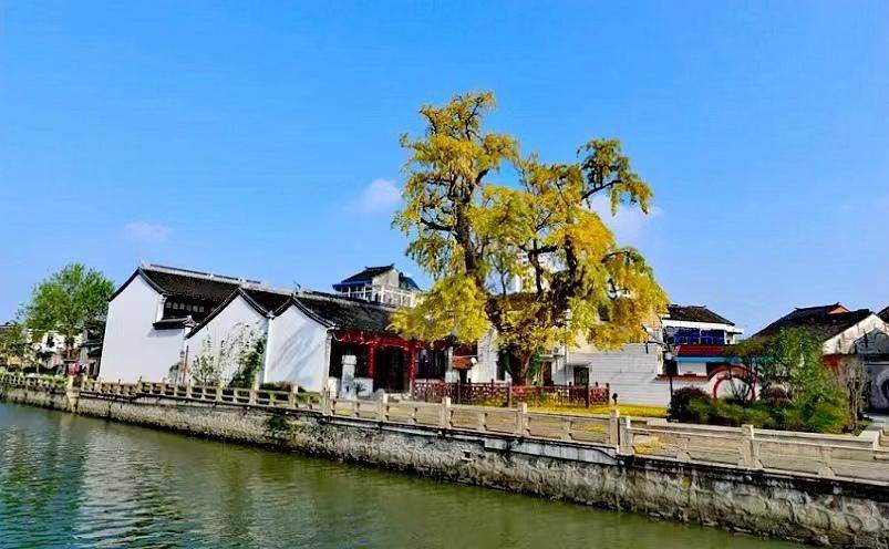 古镇里,最知名的是城隍庙门口那棵参天古银杏,由三国时期孙权的母亲吴国太亲自种植,距今已有1800年历史,如今依然枝繁叶茂,充满生机,被誉为“生物界的奇迹”。