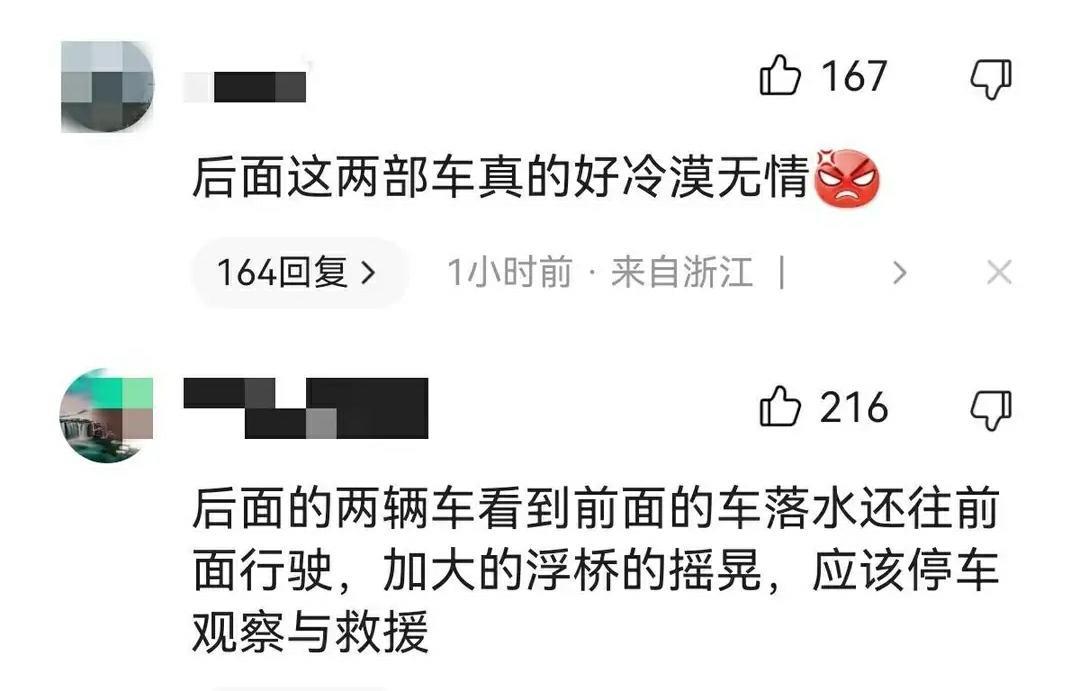 正是基于这种现象,网友们开始对当时在场的其他车辆进行批评,认为那些车上的人没有同情心。如果他们能及时起身伸出援手,也许悲剧就不会发生,说不定那些人还能得救!