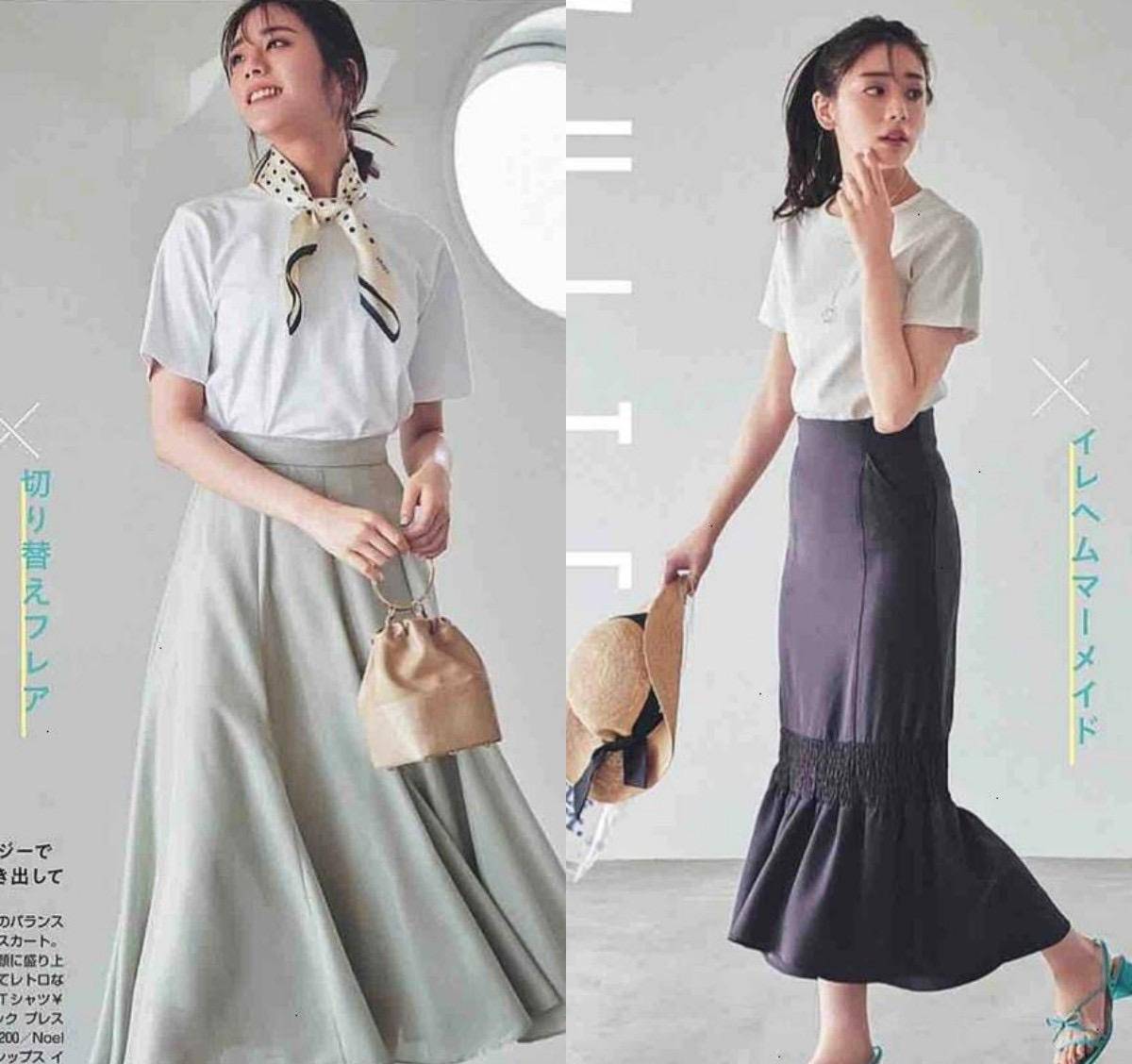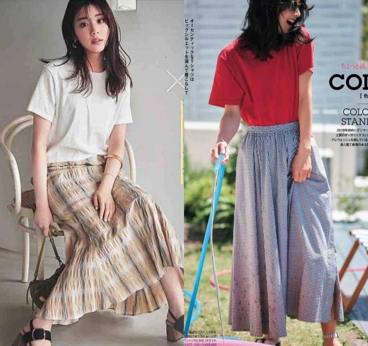 我想很多人都喜欢在夏天穿T恤,而且大多是搭配牛仔裤。牛仔裤的硬挺有型与T恤的柔软相得益彰。直筒裤、阔腿裤或直筒烟管裤都很适合搭配T恤。NO.2裙子