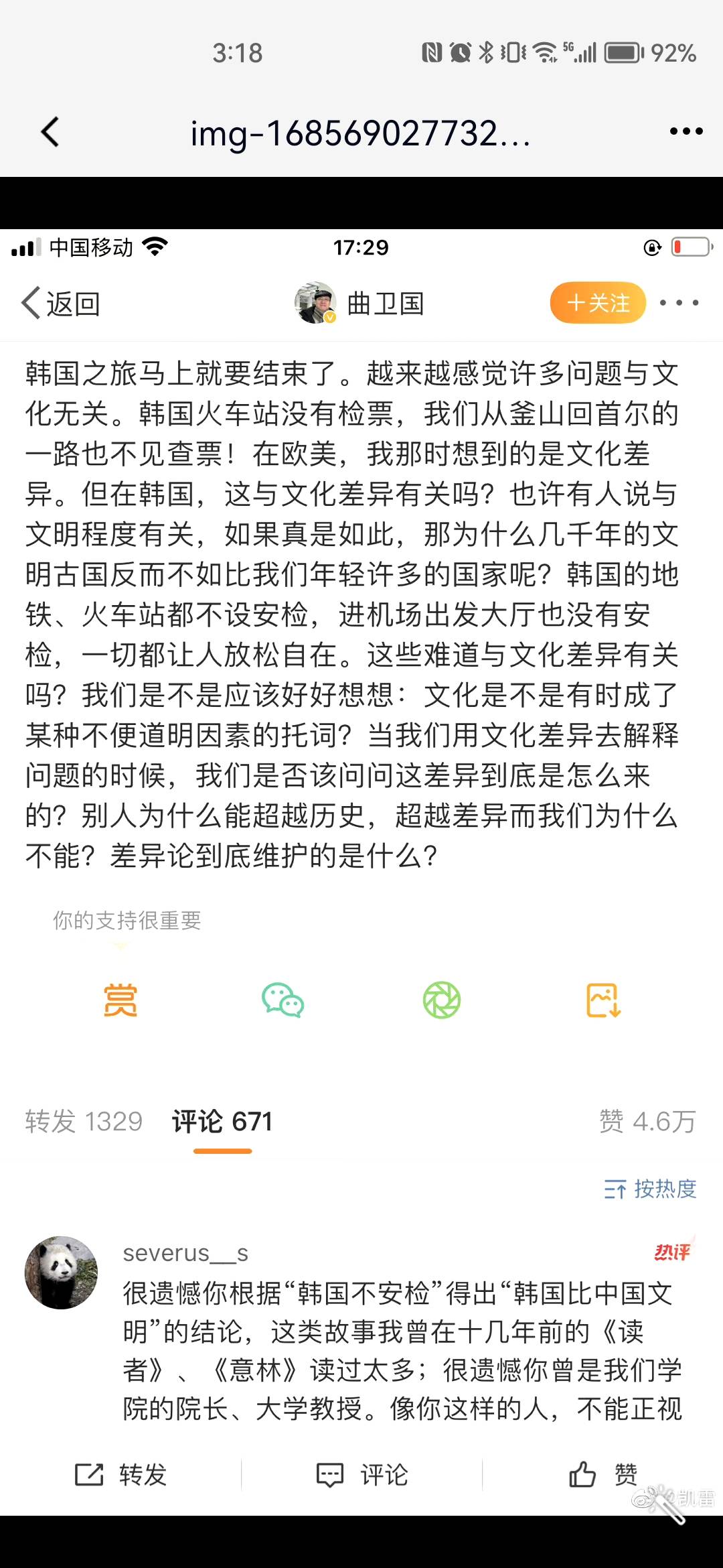 复旦大学曲卫国教授最近去了一趟韩国,当然,也看了到了很多韩国的优秀之处。