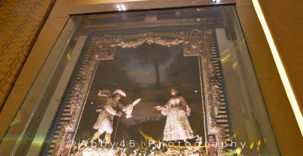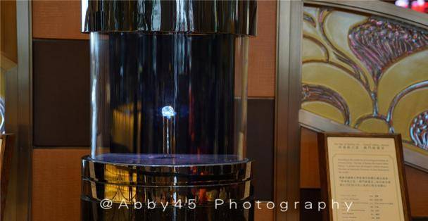 首先隆重介绍的是在新葡京酒店大堂中央,展示了一颗令人眩目的全美钻石「何鸿燊之星」。此颗为全球最大的罕见垫型钻石,达218.08卡,被美国GIA组织评为全球最完美切割、完美对称及成色最高的D色全美钻石;而钻石更以何鸿燊博士命名,反映出澳门博彩股份有限公司对高标准的追求及对客人的服务承诺。因为有红外线保护,还有防护罩,所以拍得不是很清楚,强烈推荐大家亲自去感受下。