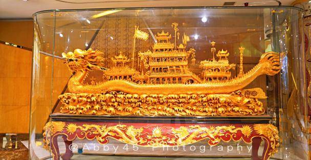 接下来华丽丽的龙船也相当引人注目。不仅造型庞大,气势恢宏,而且雕工细腻,栩栩如生。