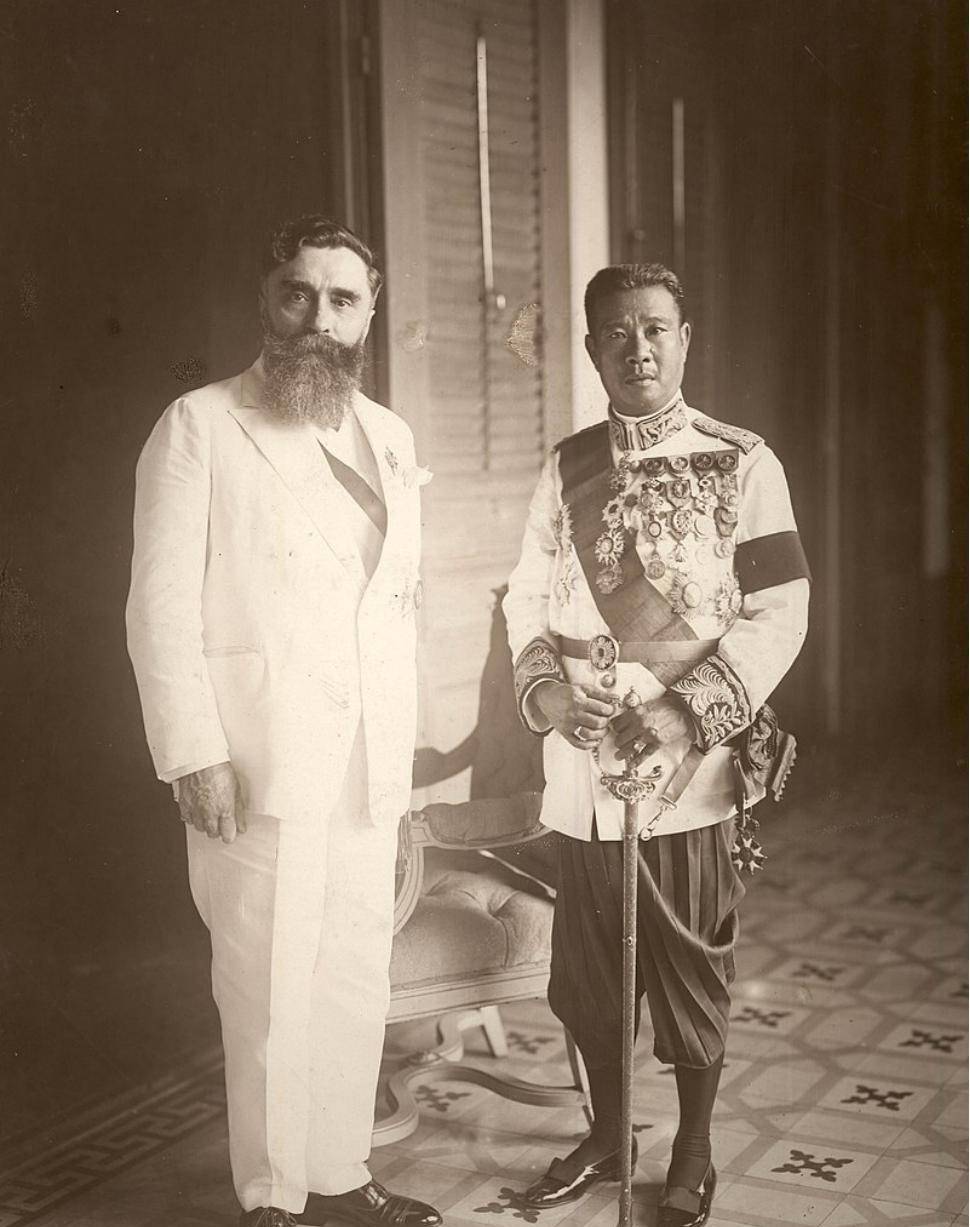 ▲前任国王西索瓦·莫尼旺国王与法属印度支那总督亚历山大·瓦雷纳