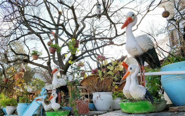 在老旧的门窗和色彩斑斓的石头墙上涂满了岁月的痕迹,家家户户的屋前门外都种满了各种鲜花树木,当然还有那些无处不在的蓝眼睛在阳光下发着光。