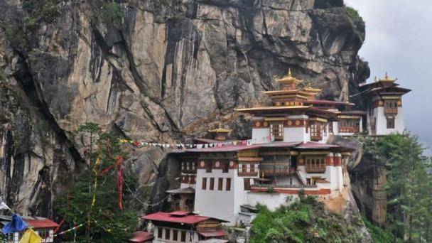 这座寺庙位于悬崖峭壁之上,可徒步登山朝圣,饱览山谷的秀丽风景,虎穴寺是不丹国内最神圣的佛教寺庙,坐落在帕罗山谷中900多米高的悬崖峭壁之上,海拔3120米。