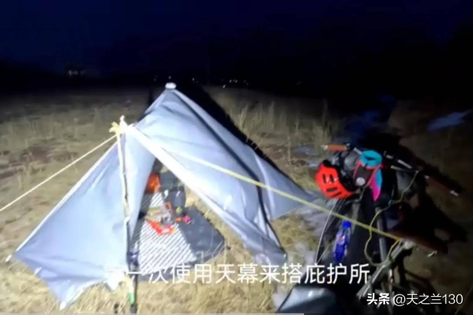 这是我第一次用天篷搭帐篷。因为不熟悉,所以搭建了很久。虽然不漂亮,但是可以遮风挡雨。我捡柴火,搭柴火炉,用火锅底料煮土豆粉。它看起来像我们吃的面粉。
