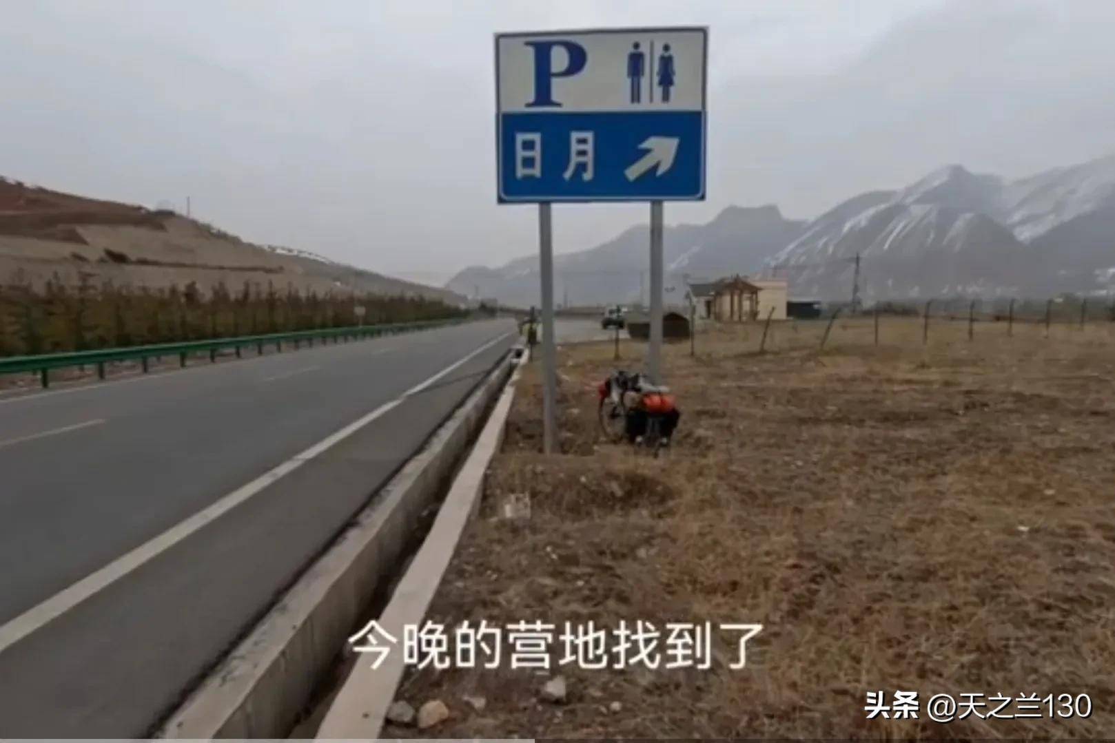 骑行了十几公里,已经是下午六点多了。徐云不想再进一步了。他想在日月山山顶扎营,那里可以看到青海湖,又怕山上没有信号。山下刚好有个停车休息区。决定在附近的草地上扎营。